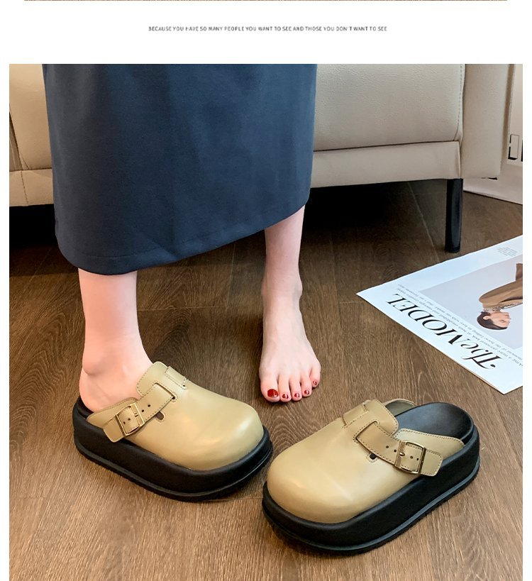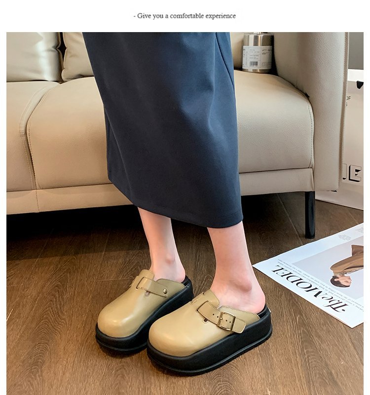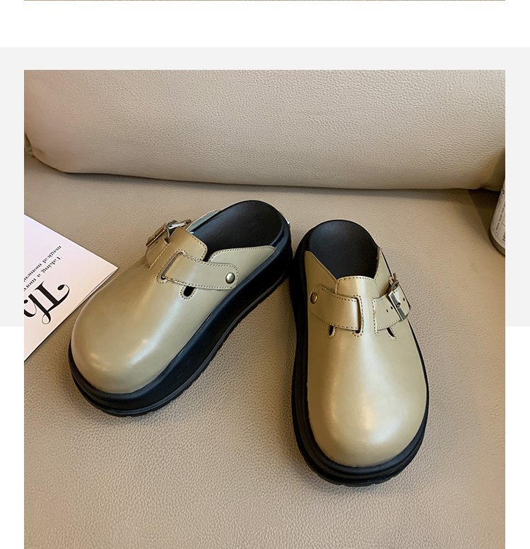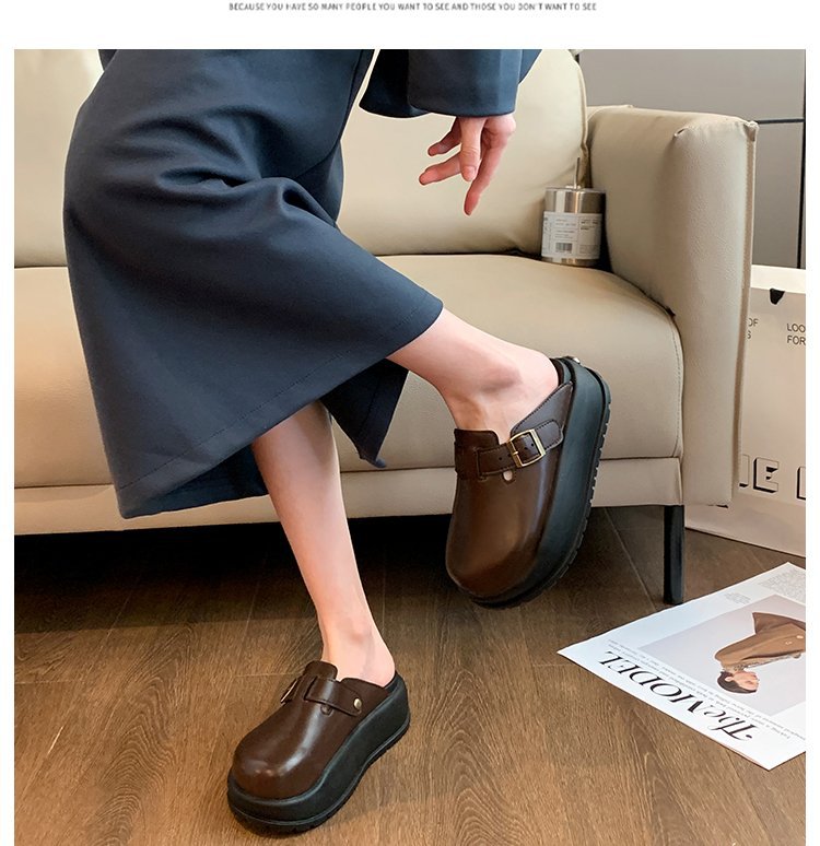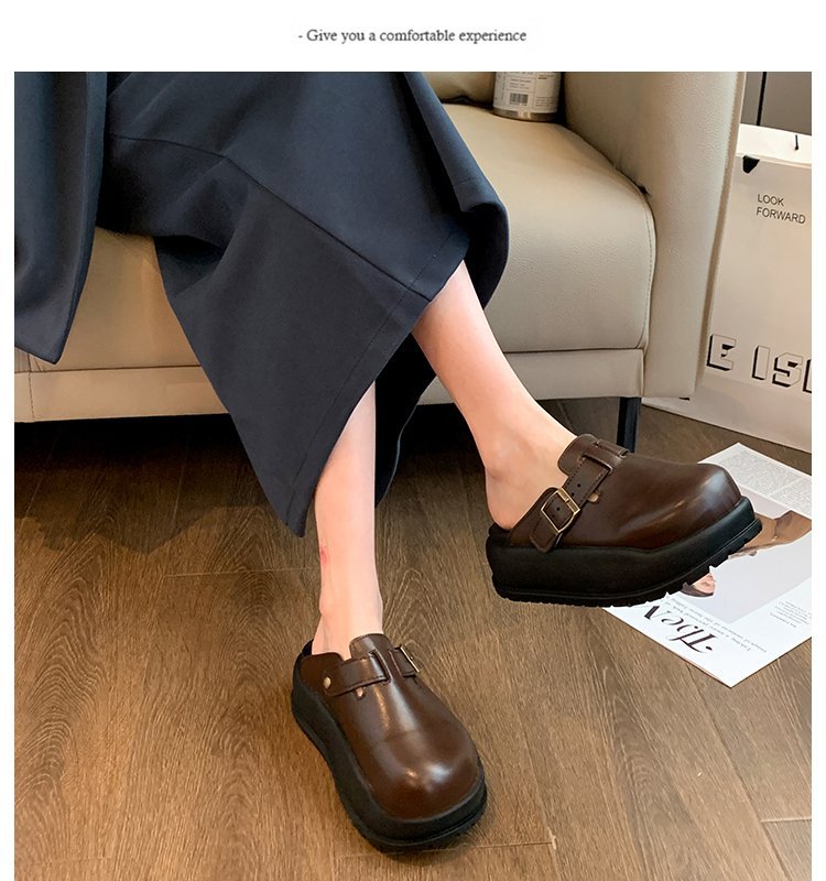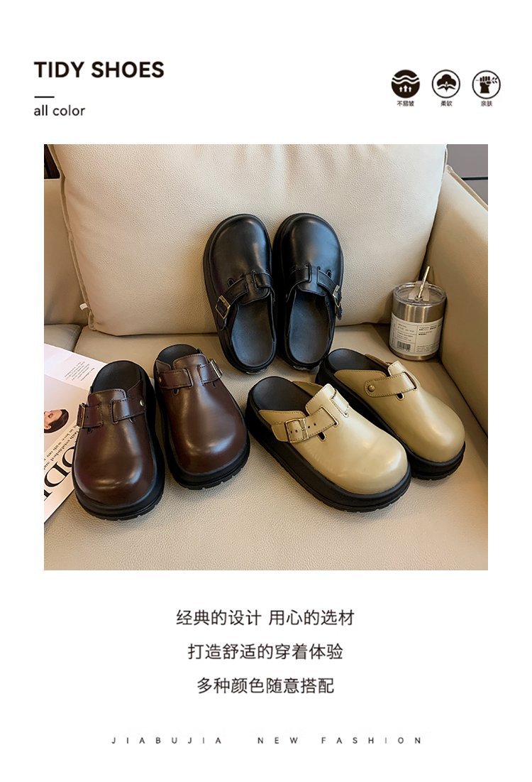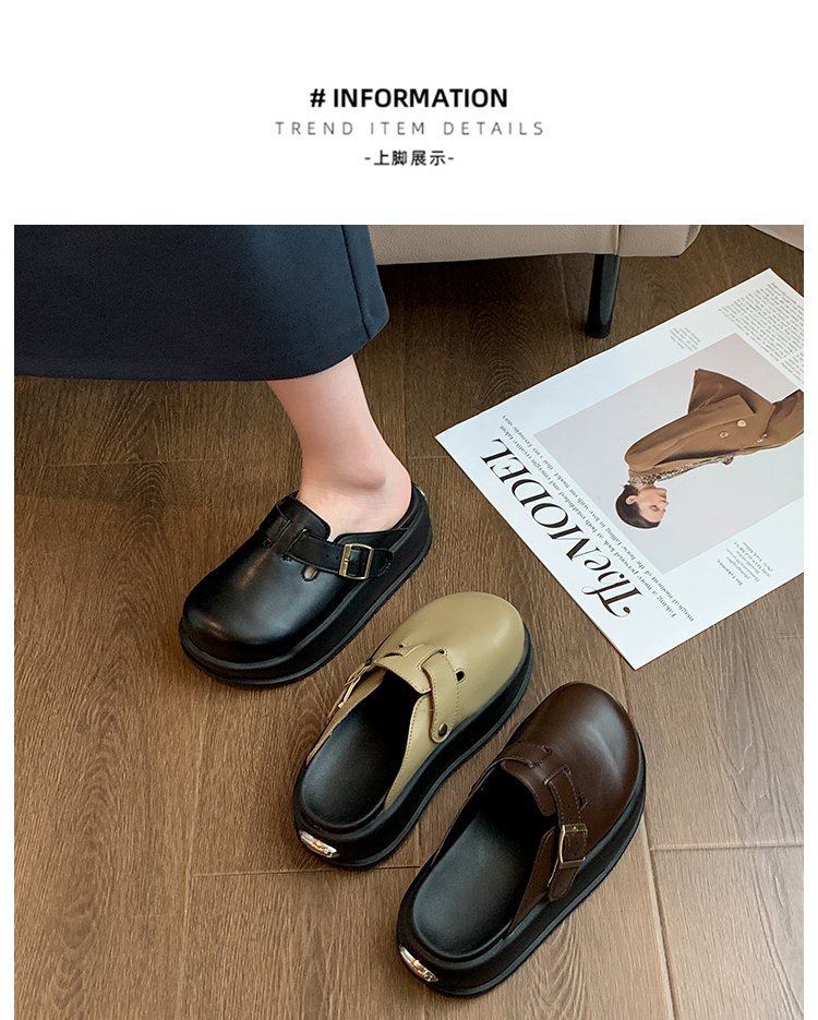 레트로 닫힌 발가락 슬리퍼 여성 겉옷 2024 봄 새로운 두꺼운 바닥 Boken 신발 프랑스 게으른 슬립 온 하프 슬리퍼스토어 가기