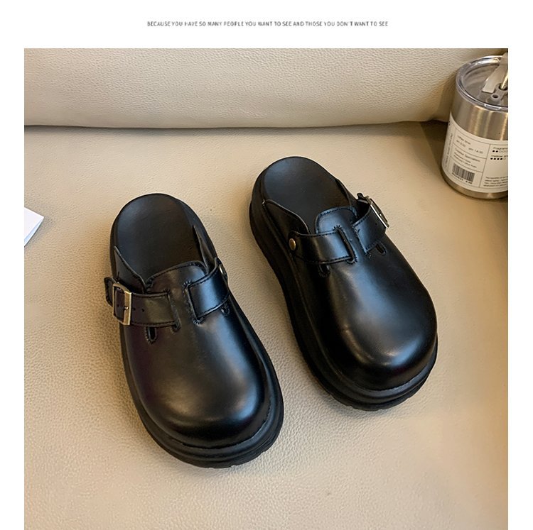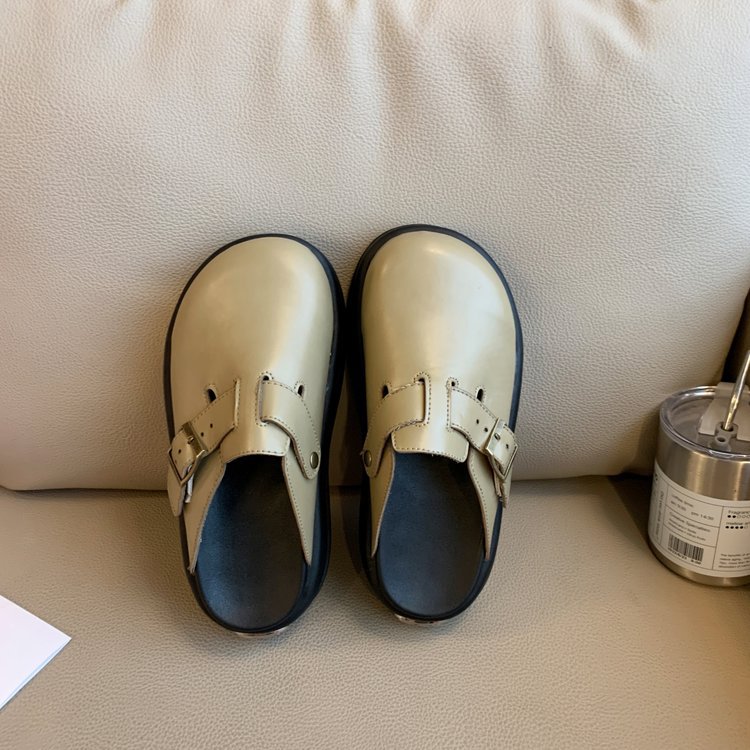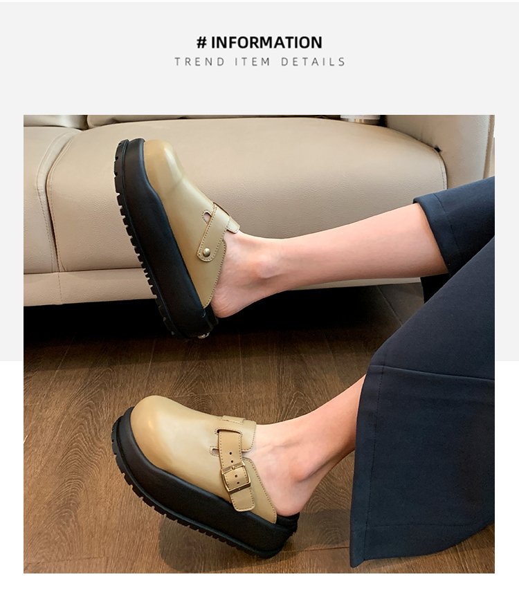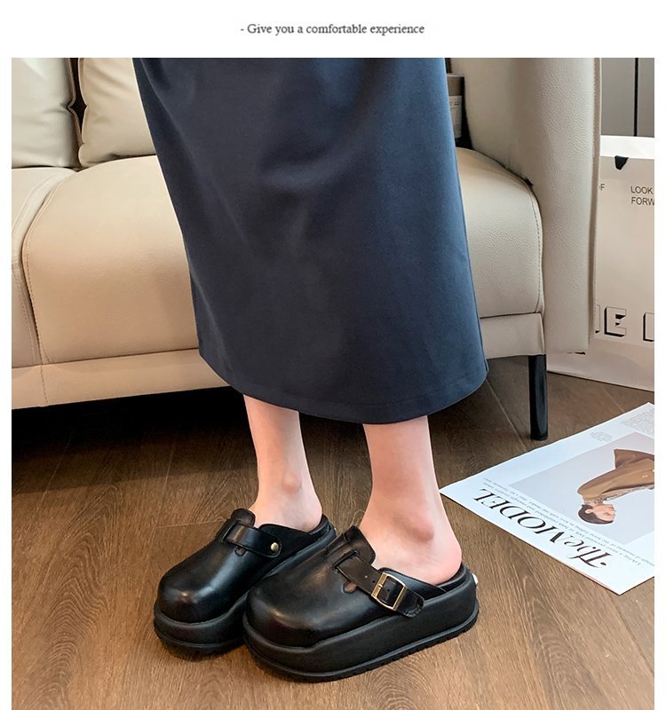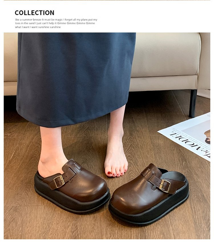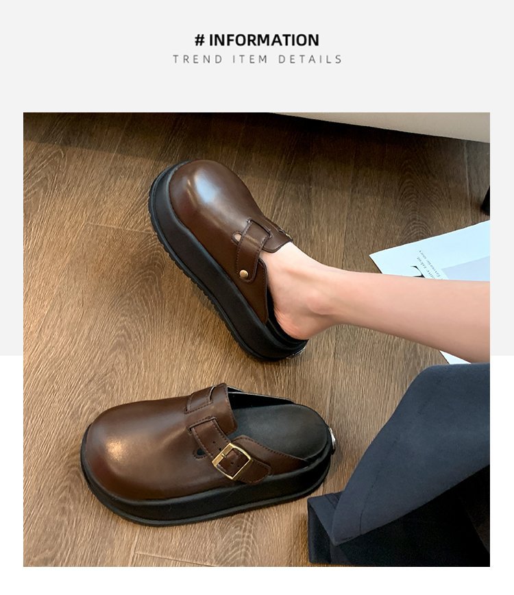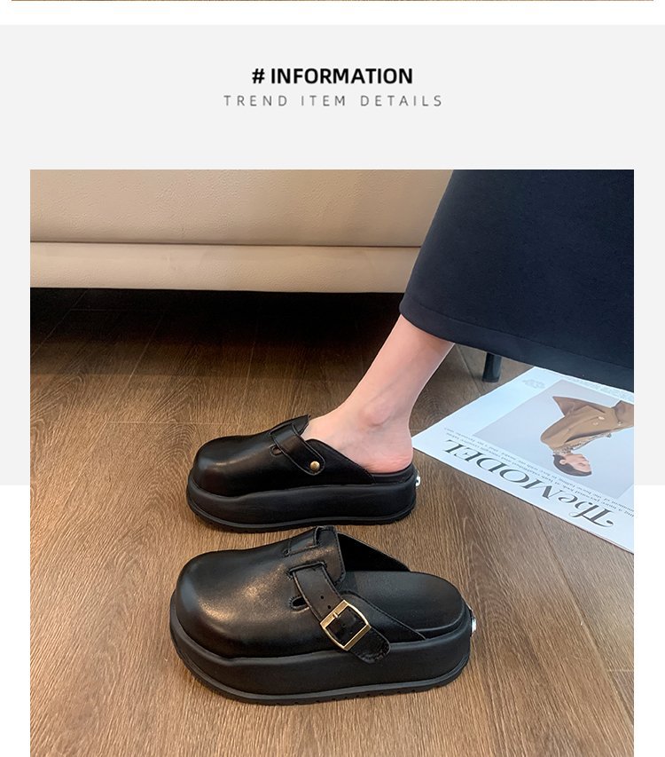 레트로 닫힌 발가락 슬리퍼 여성 겉옷 2024 봄 새로운 두꺼운 바닥 Boken 신발 프랑스 게으른 슬립 온 하프 슬리퍼스토어 가기