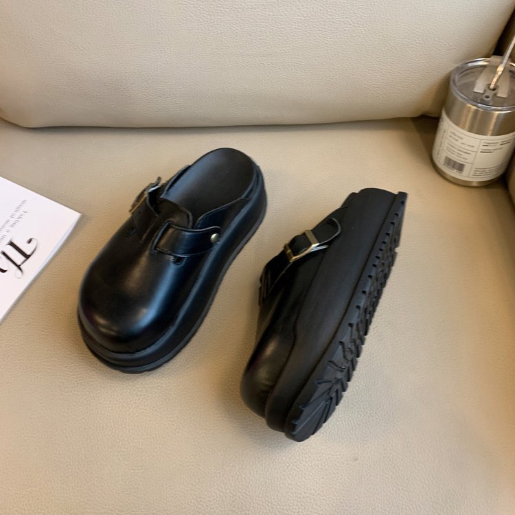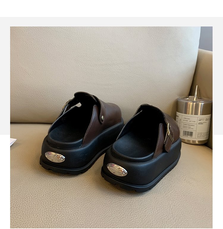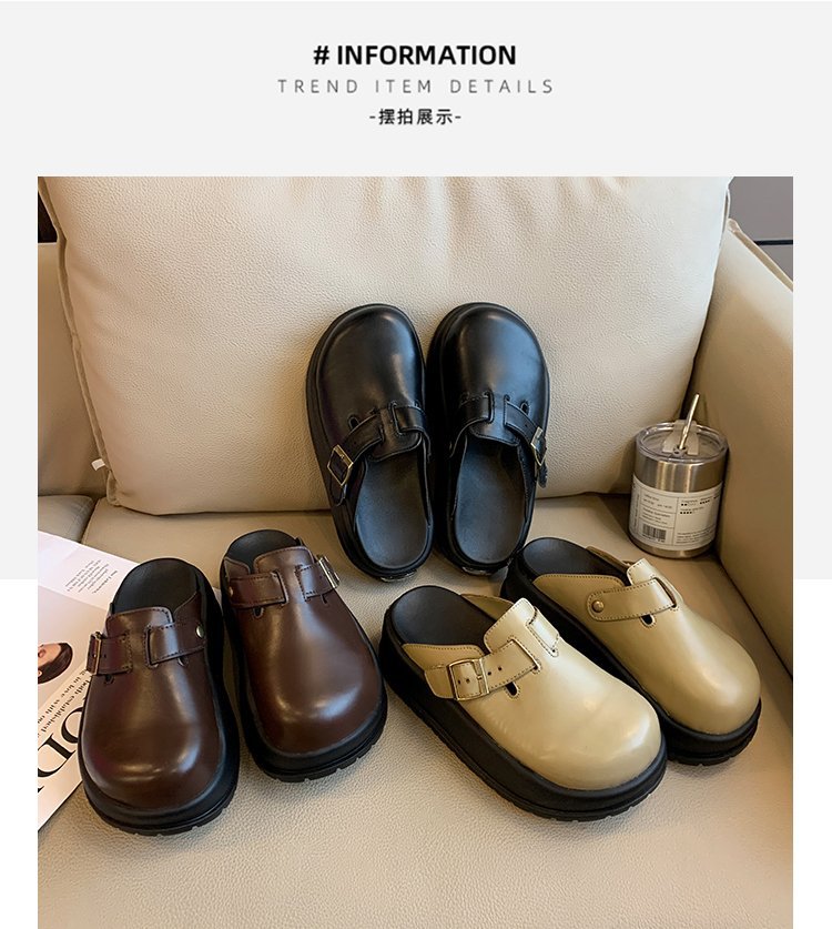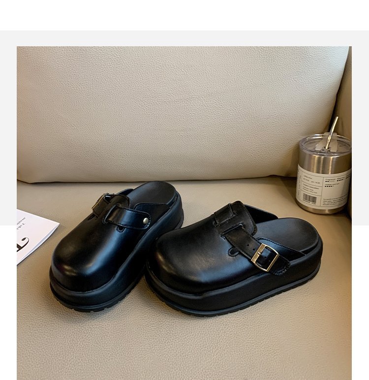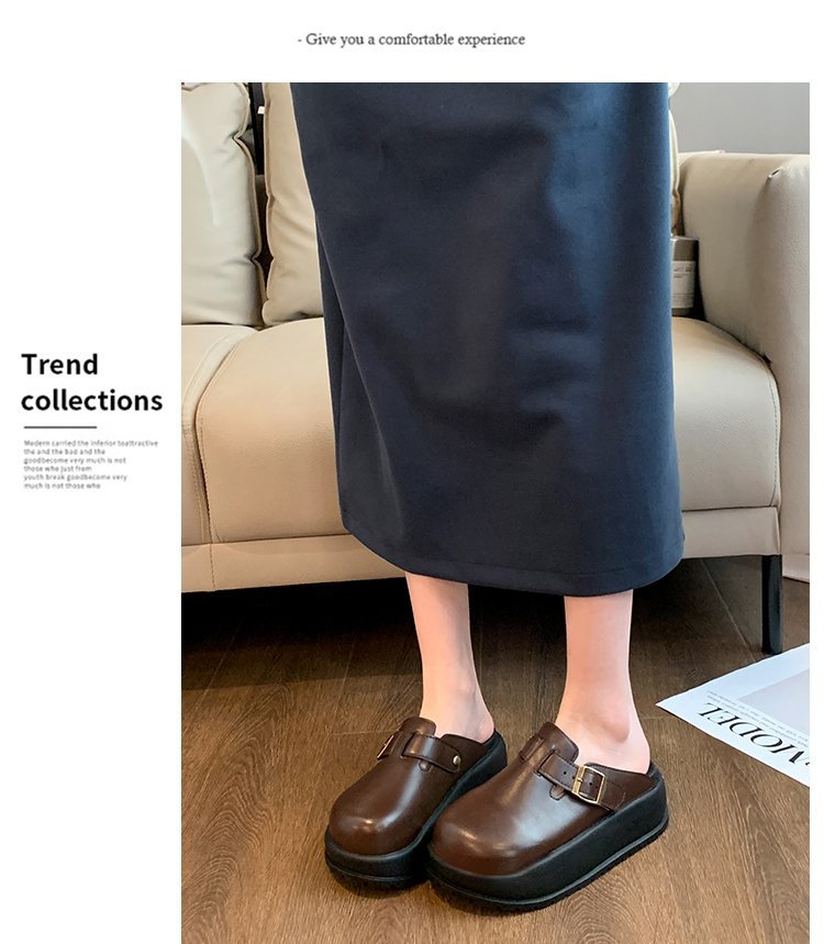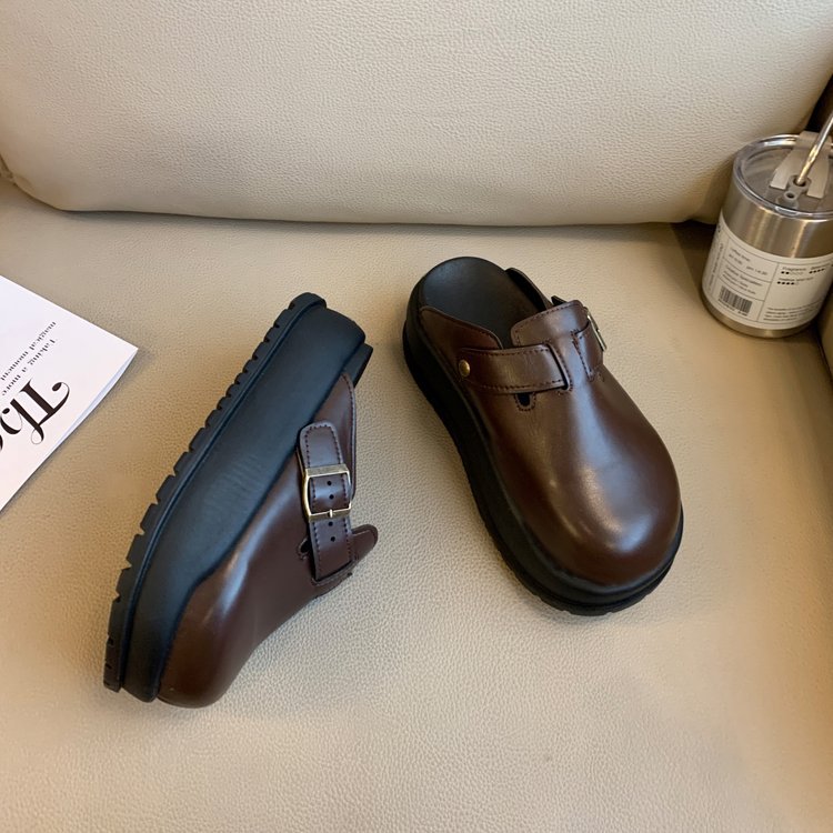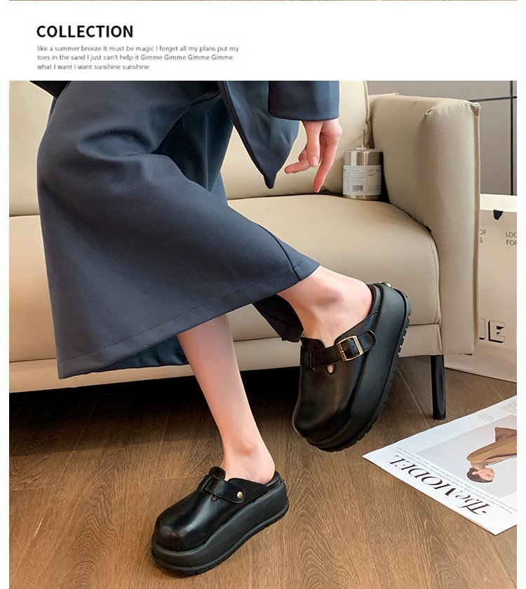 레트로 닫힌 발가락 슬리퍼 여성 겉옷 2024 봄 새로운 두꺼운 바닥 Boken 신발 프랑스 게으른 슬립 온 하프 슬리퍼스토어 가기