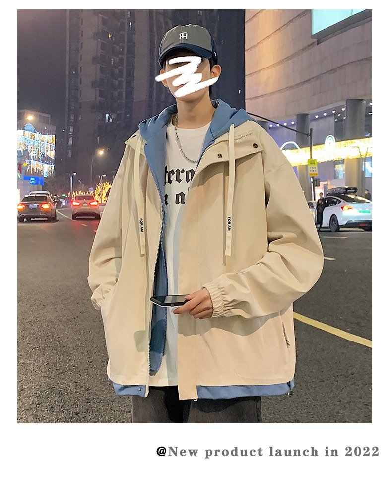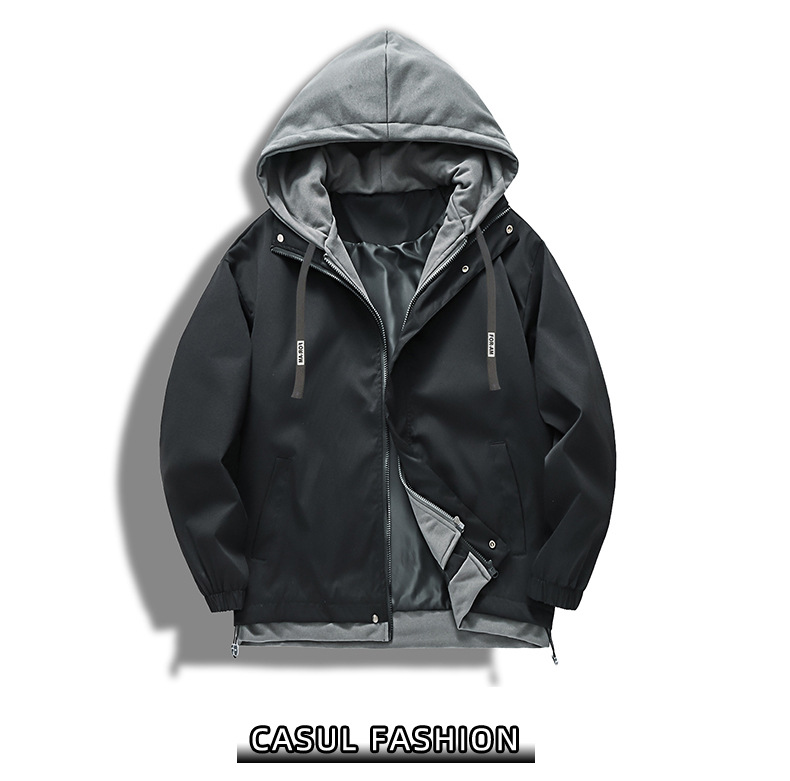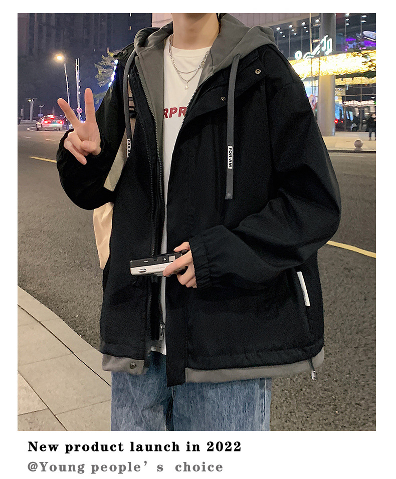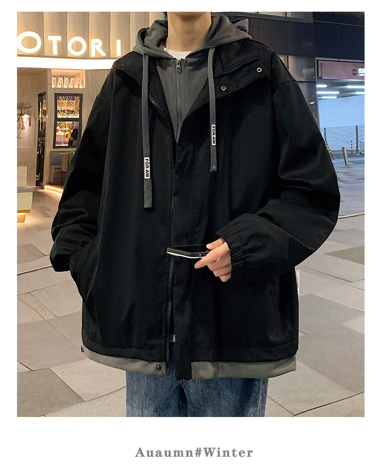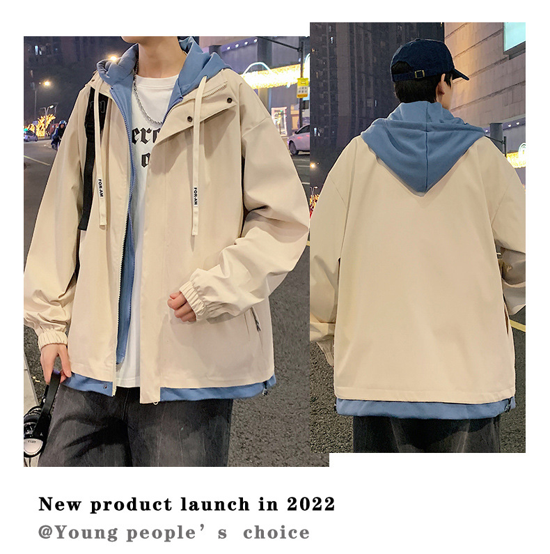 남성 자켓 봄, 가을, 겨울 가짜 투피스 두꺼운 캐주얼 재킷 작업복 2024 새로운 소년 패션 브랜드 재킷스토어 가기