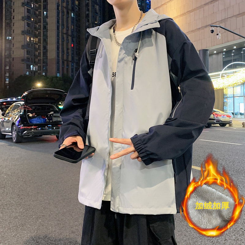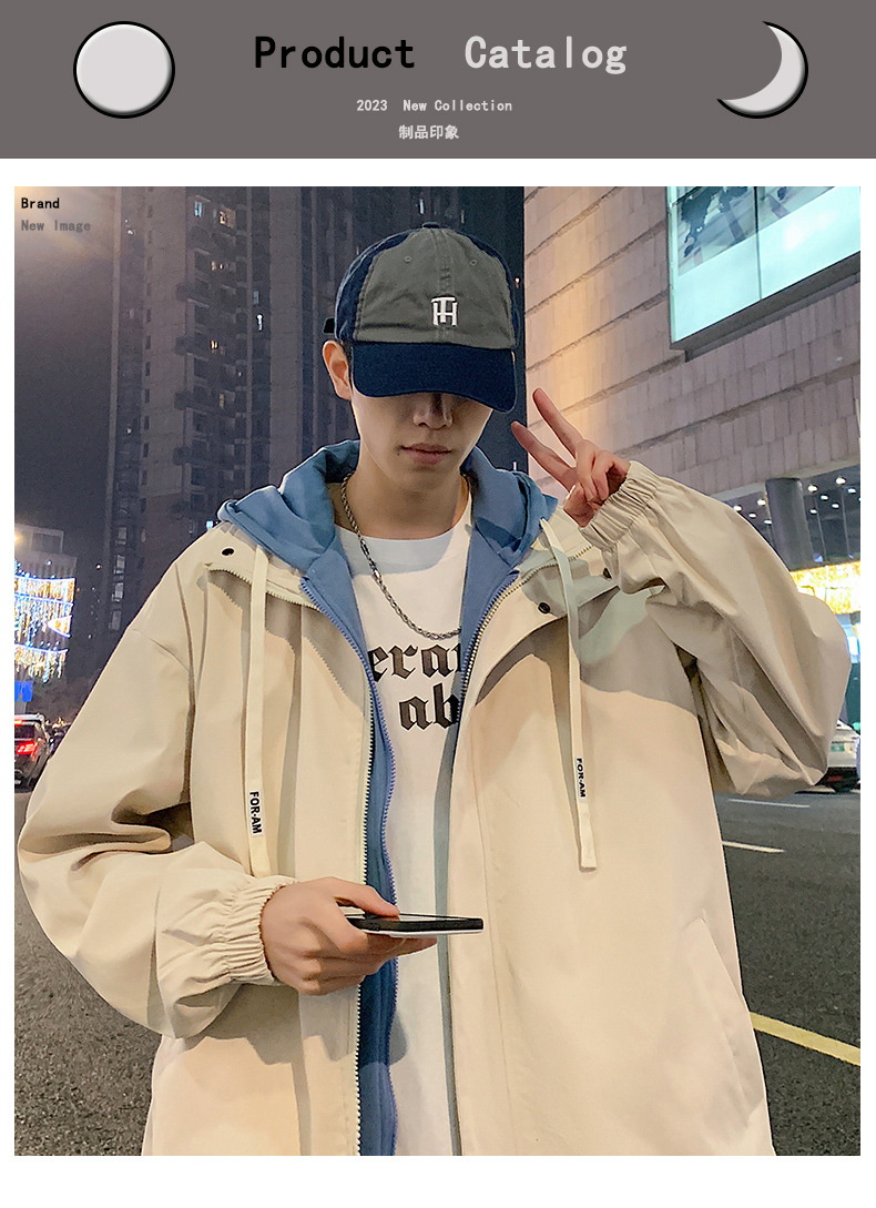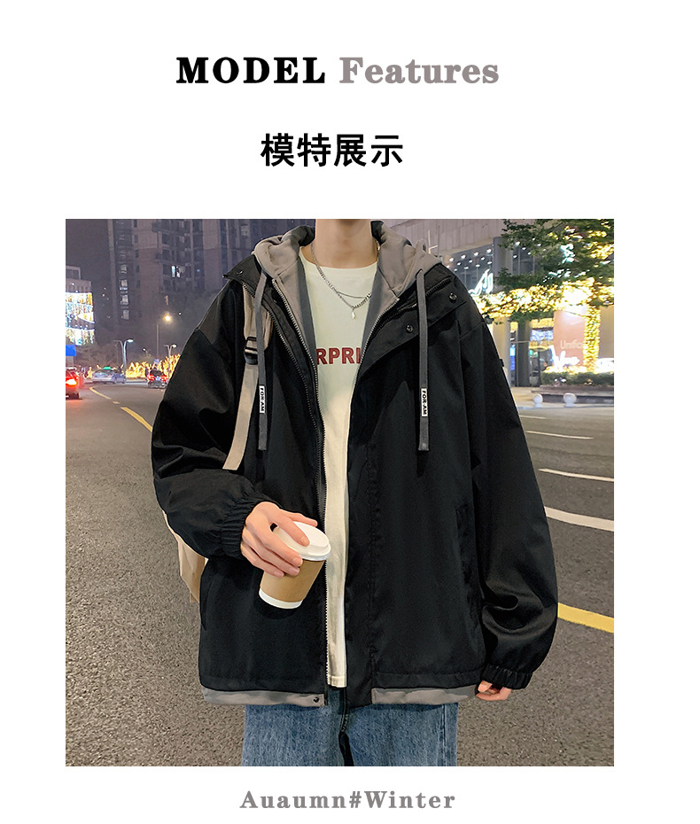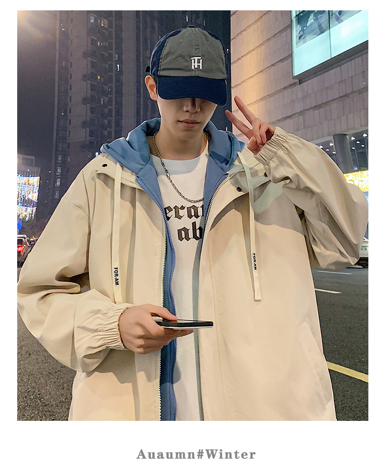 남성 자켓 봄, 가을, 겨울 가짜 투피스 두꺼운 캐주얼 재킷 작업복 2024 새로운 소년 패션 브랜드 재킷스토어 가기