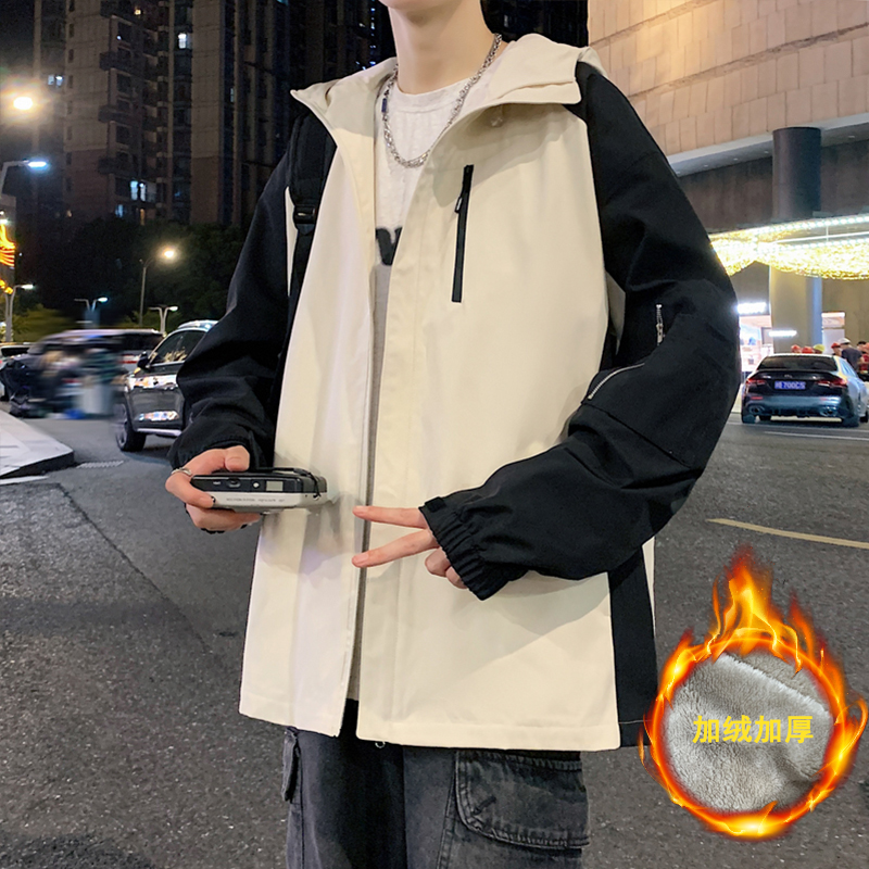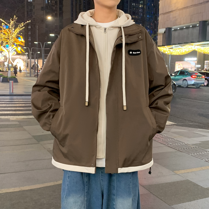 남성 자켓 봄, 가을, 겨울 가짜 투피스 두꺼운 캐주얼 재킷 작업복 2024 새로운 소년 패션 브랜드 재킷