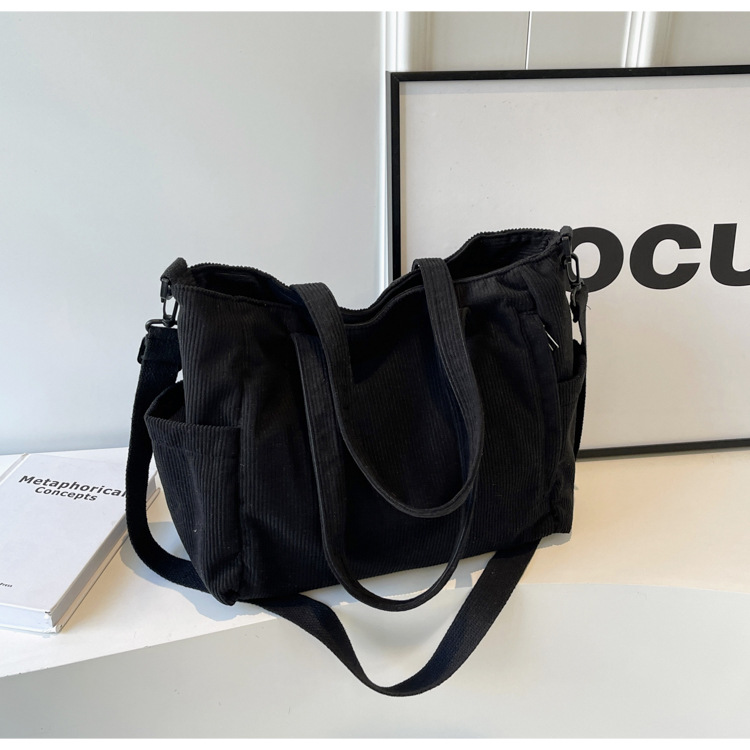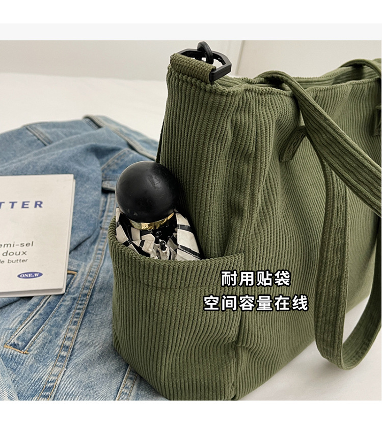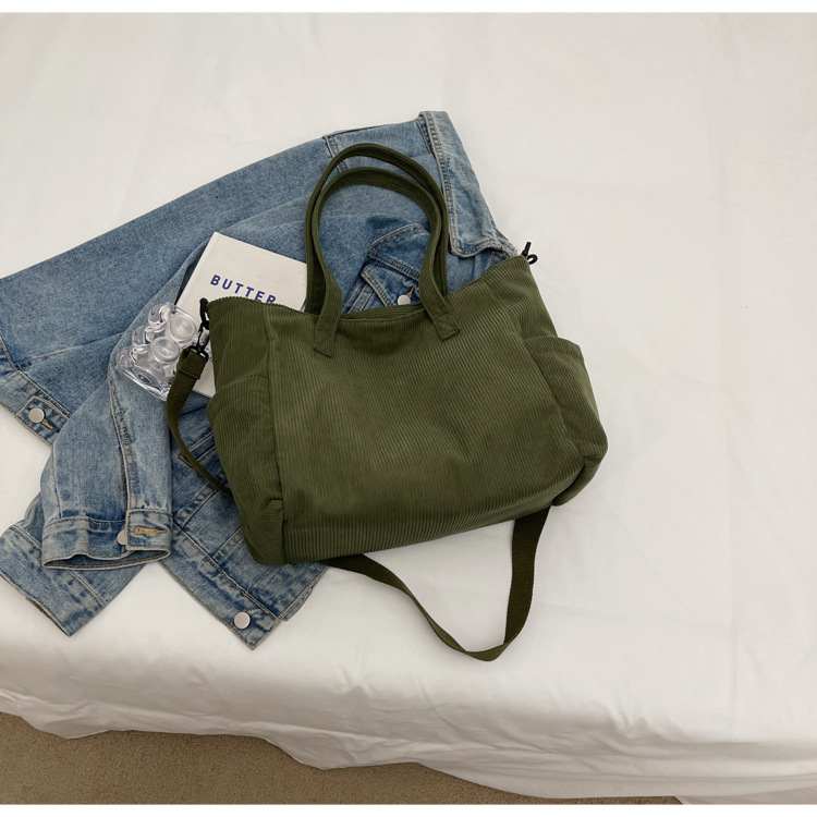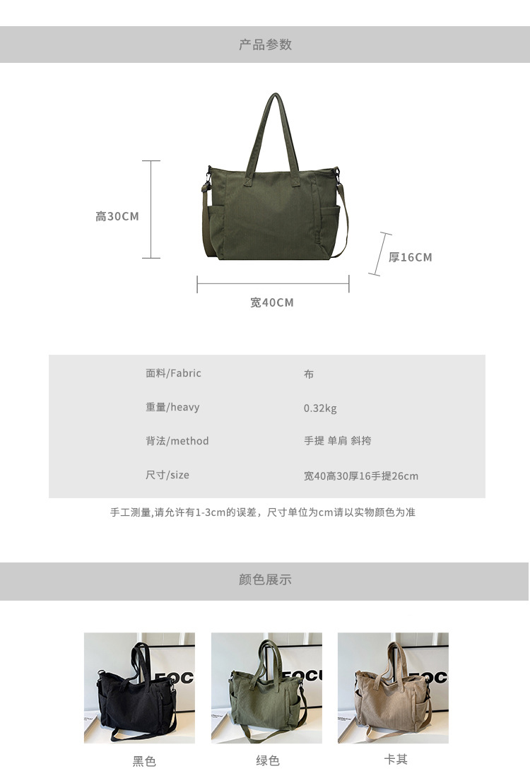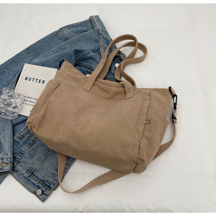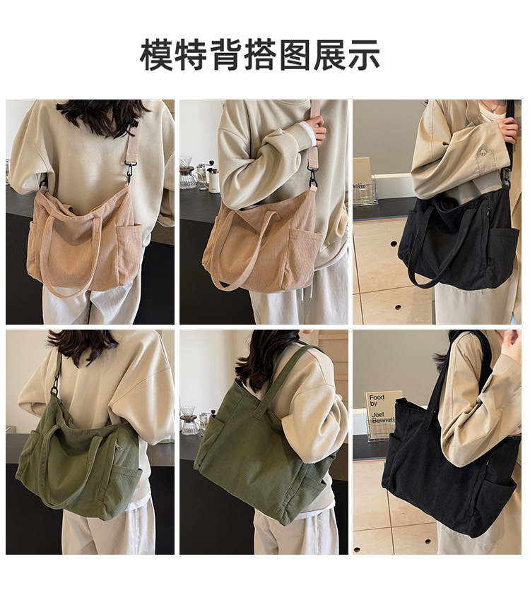 2024 새로운 메신저 가방 코듀로이 천 통근 대용량 토트 백 학생 클래스 숄더백 휴대용 스쿨 백스토어 가기