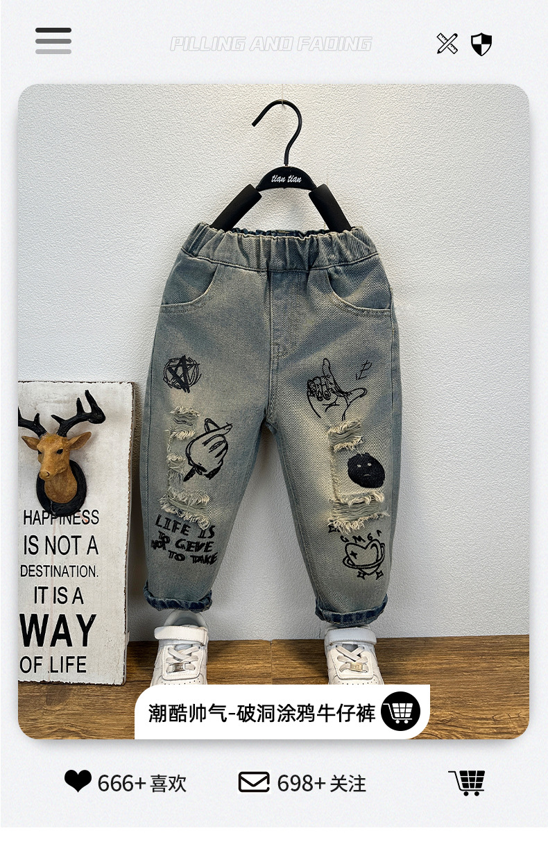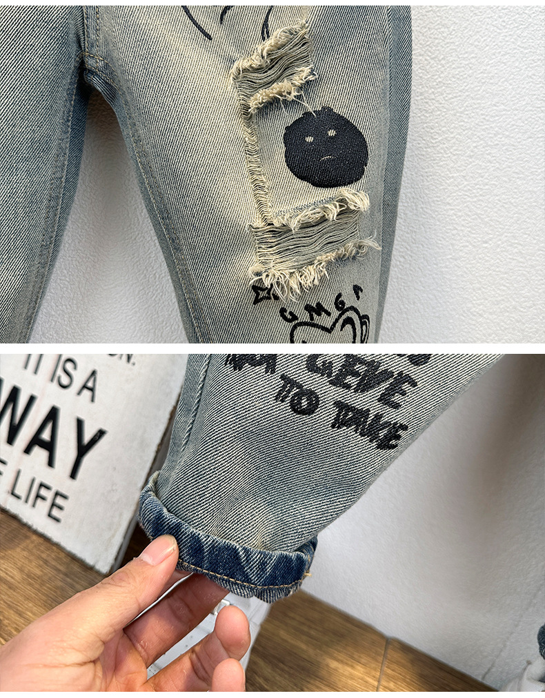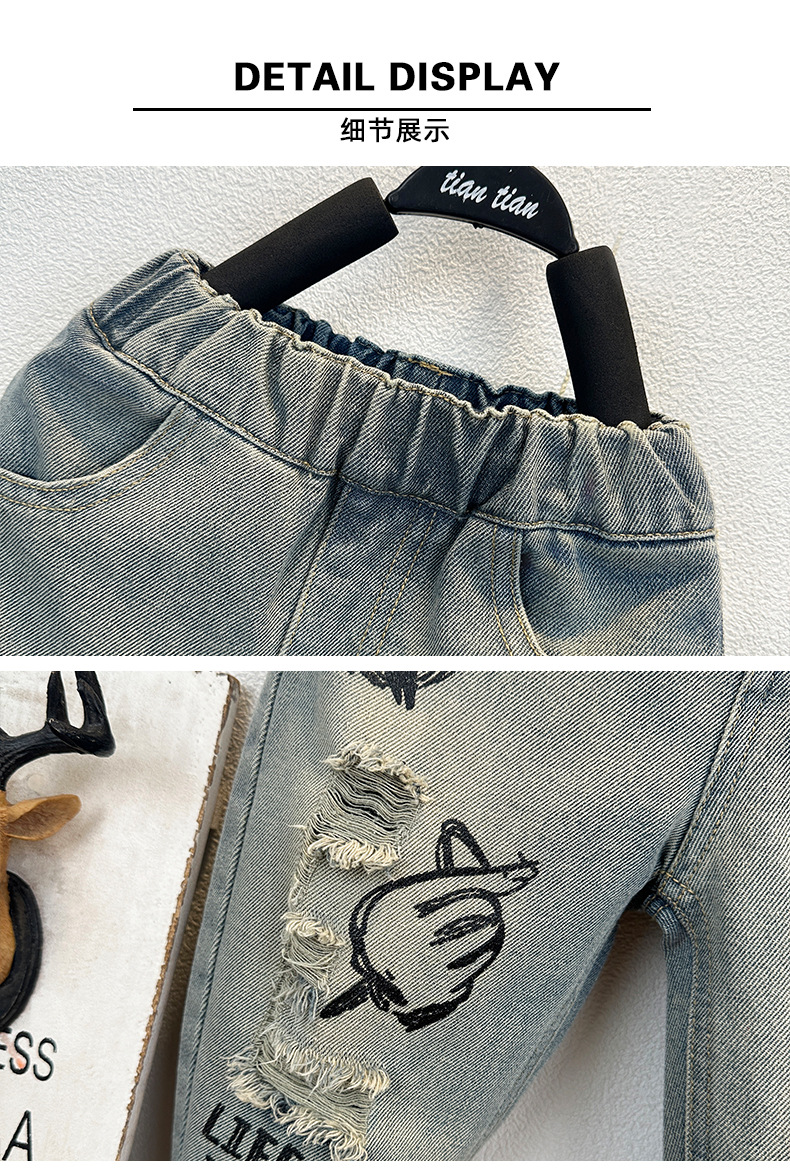 남아용 그래피티 데님 팬츠, 가을 스타일 아동복, 수출용 남아 바지, 한국 스타일 학생 캐주얼 데님 롱 팬츠스토어 가기