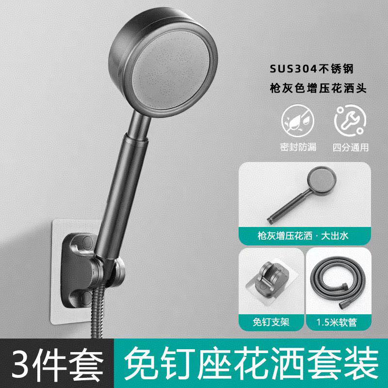 • 건메탈 304 스테인리스 스틸 샤워 헤드 + 무타공 샤워기 거치대 + 1.5m 스테인리스 스틸 샤워 호스