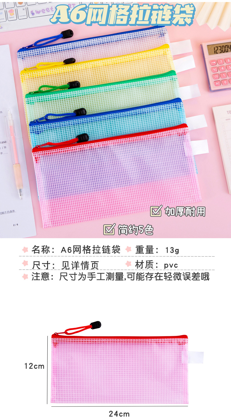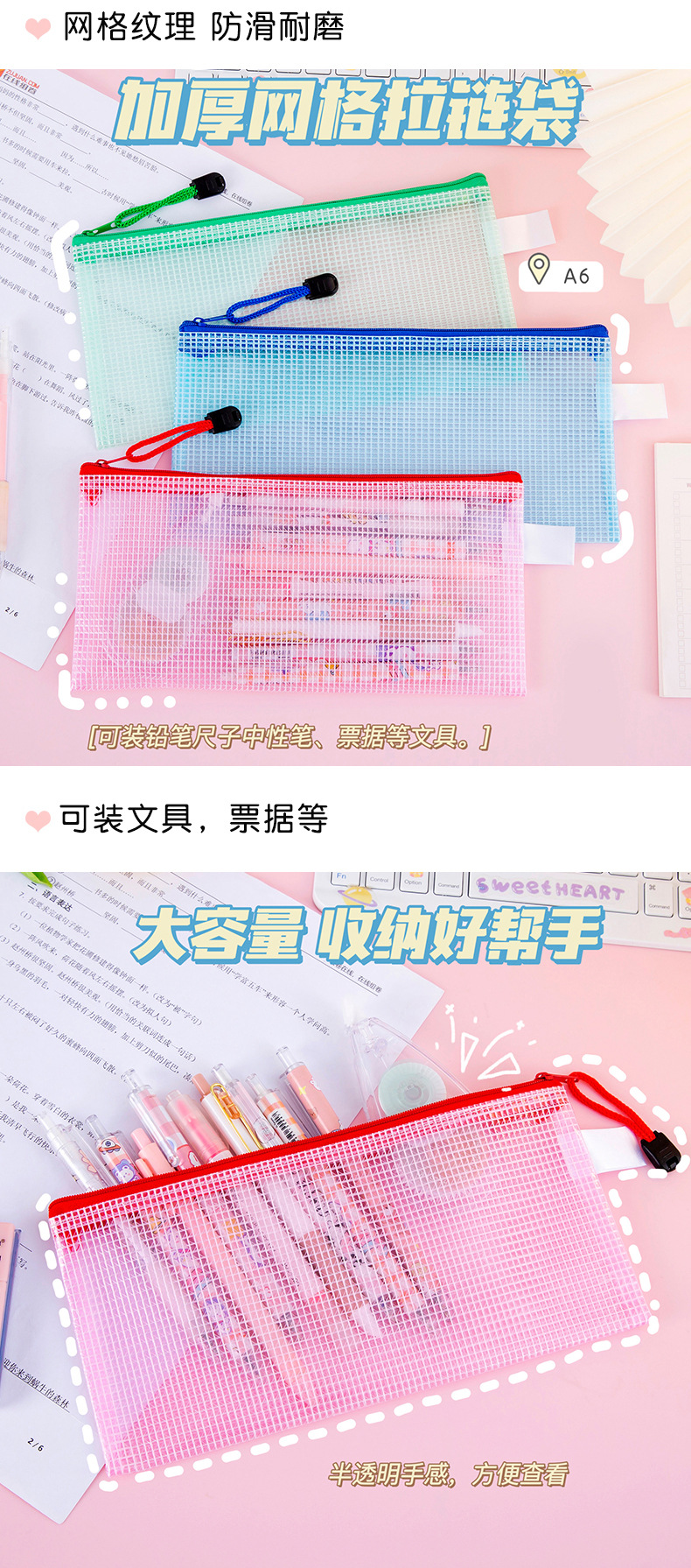 A6 투명 메쉬 파일 가방 간단한 방수 문구 가방 소재 빌 저장 지퍼 가방 학생 연필 케이스 도매스토어 가기