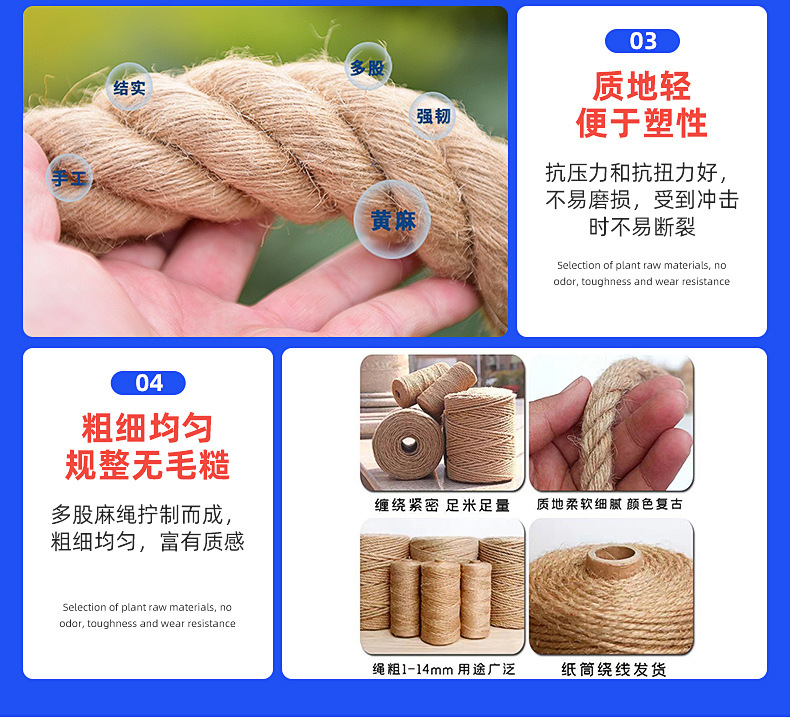 거친 대마줄 울타리줄 장식용 묶음줄 내구성과 내마모성이 뛰어난 수제 꼬임줄 줄다리기줄 걸이줄 대마로 엮은 야외용스토어 가기