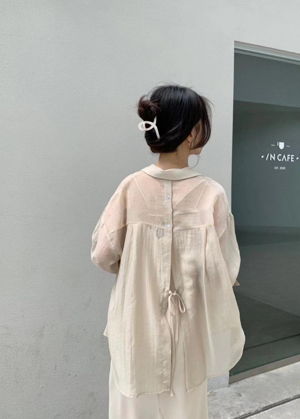 Lailisa 쉬폰 얇은 백 슬릿 셔츠 여성의 태양 보호 셔츠 여름 새로운 다목적 한국 스타일 패션 셔츠 패션 패션스토어 가기