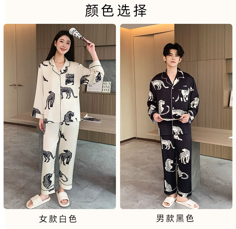 [타이거 샤오 표범 그림자] 커플 잠옷 여성 봄과 가을 아이스 실크 긴소매 세트 남성 플러스 사이즈 인조 실크 홈웨어