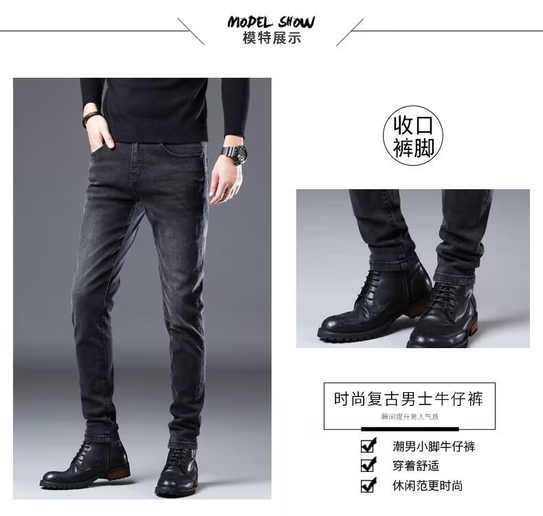 남성용 블랙 진 2025년 가을 신상 슬림핏 하이스트레치 트렌디 만능 캐주얼 롱 팬츠스토어 가기