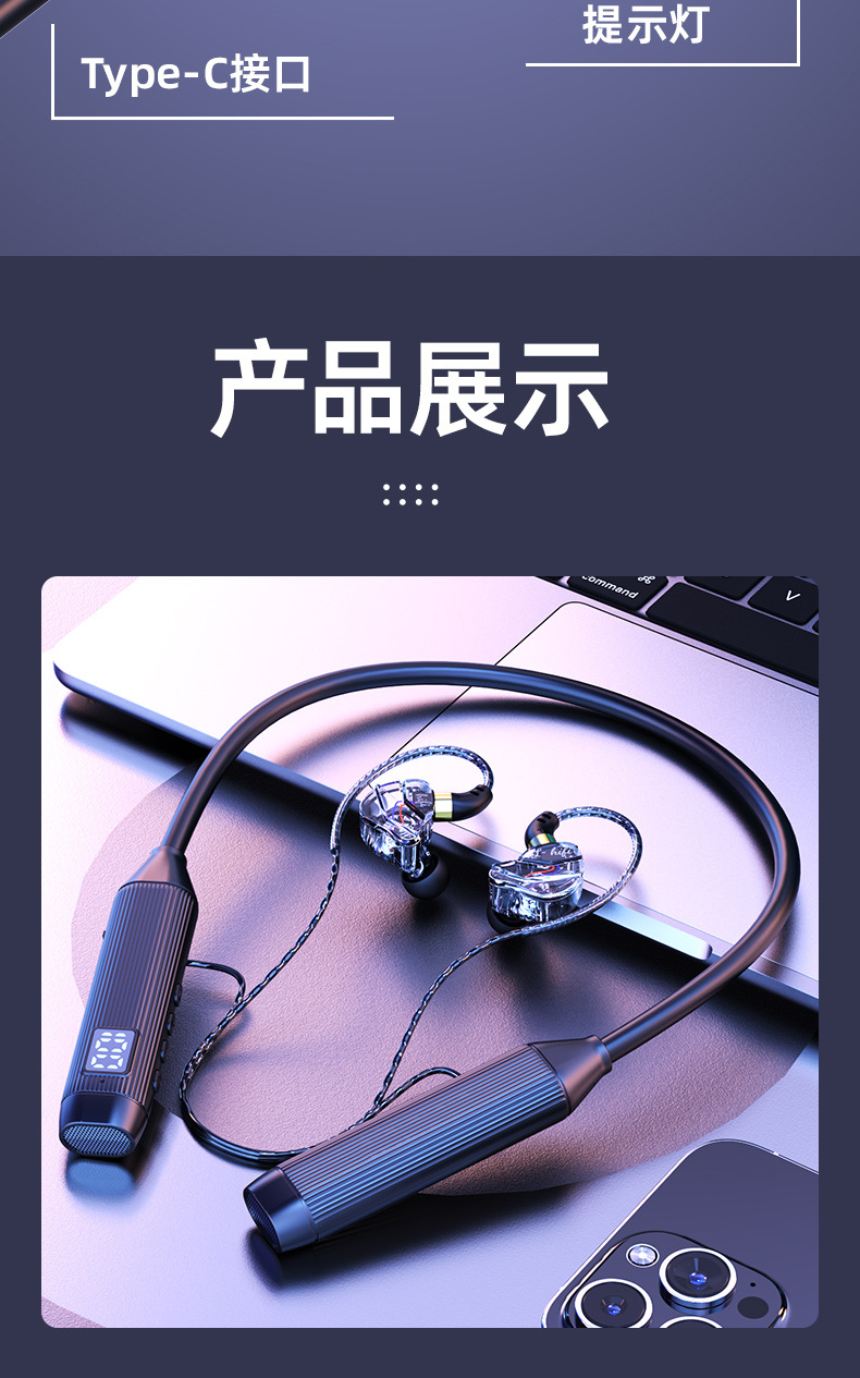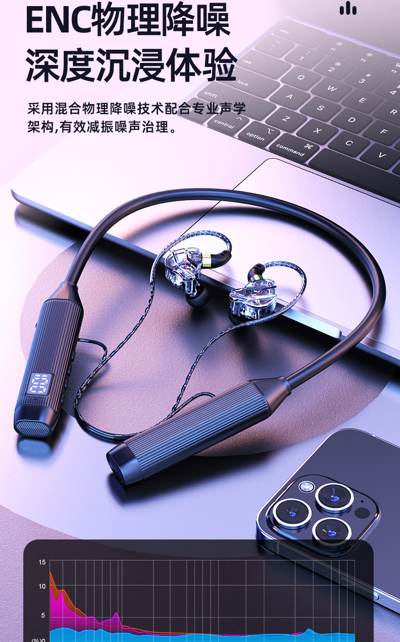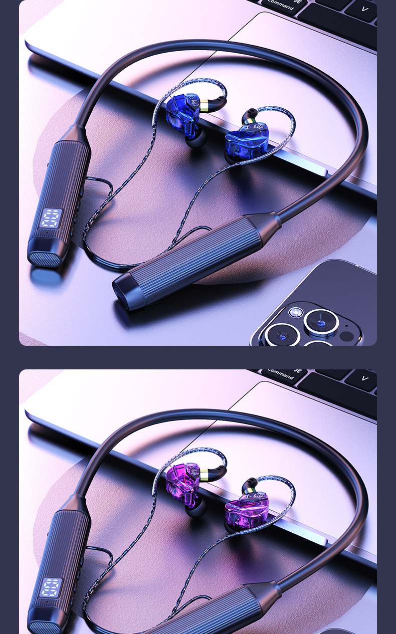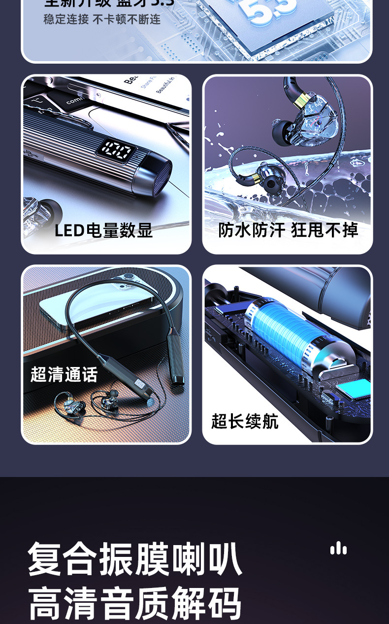 새로운 5.3 홀터넥 블루투스 헤드셋, 매우 긴 배터리 수명, 소음 감소, Apple Android 무선 이어폰 스포츠 헤드셋에 적합