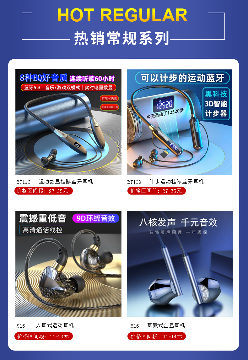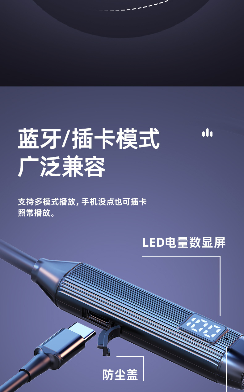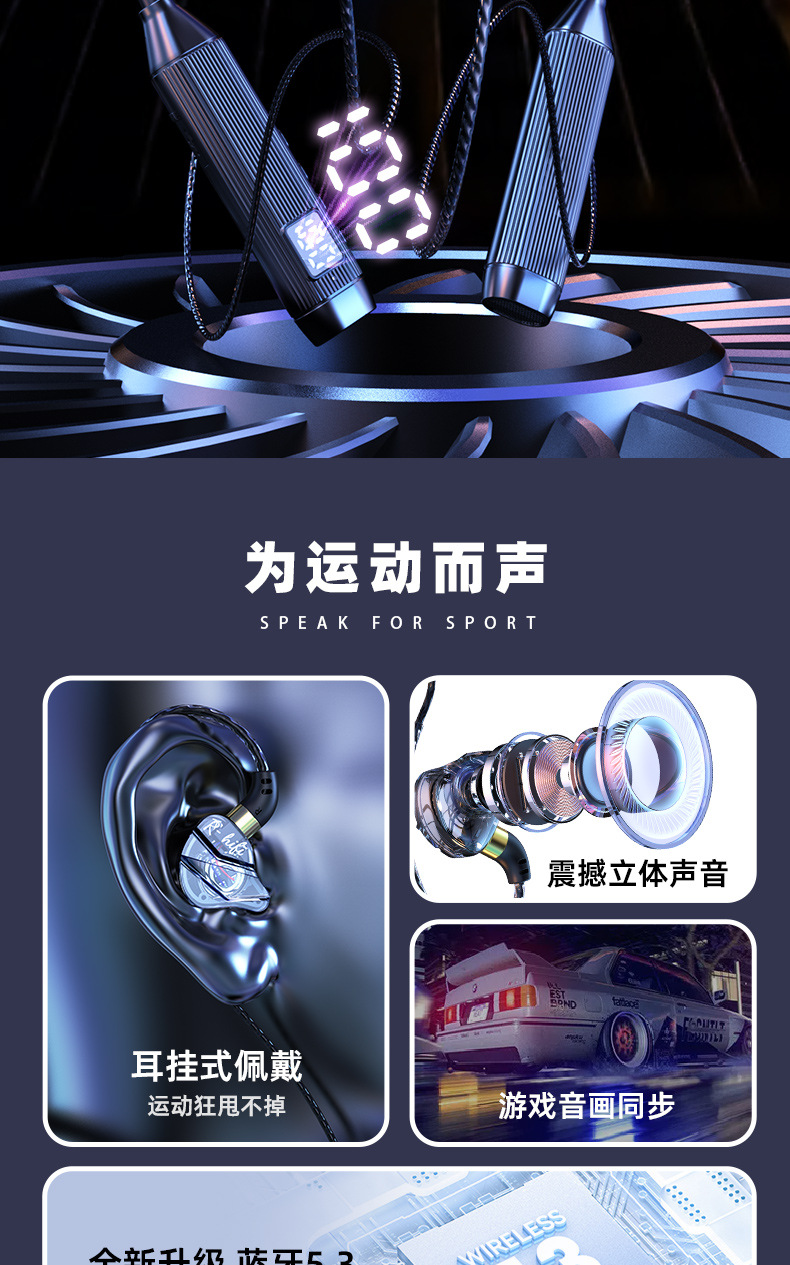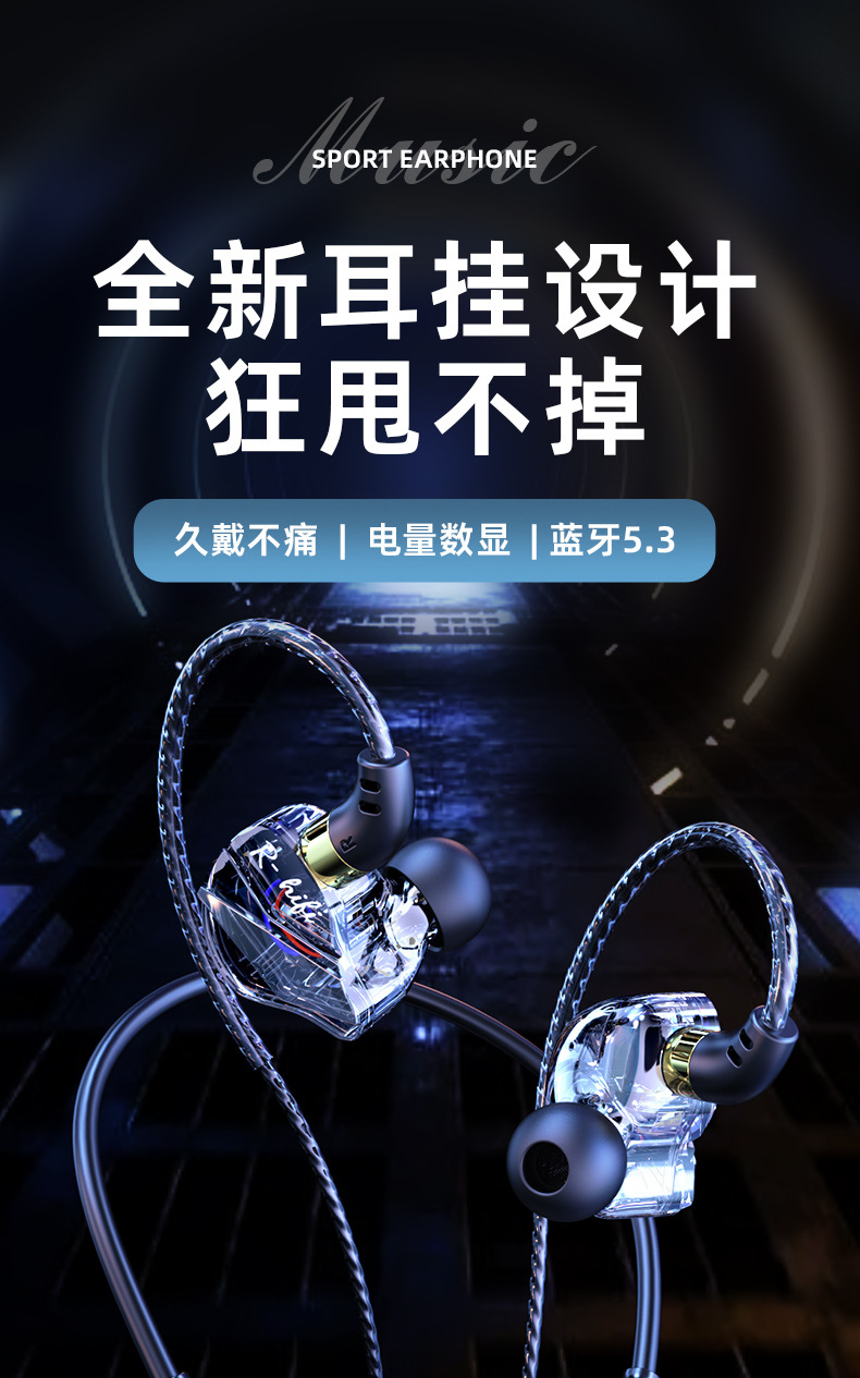 새로운 5.3 홀터넥 블루투스 헤드셋, 매우 긴 배터리 수명, 소음 감소, Apple Android 무선 이어폰 스포츠 헤드셋에 적합
