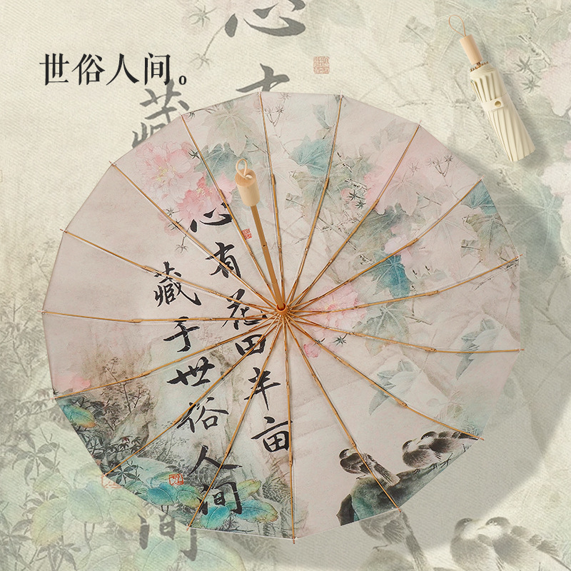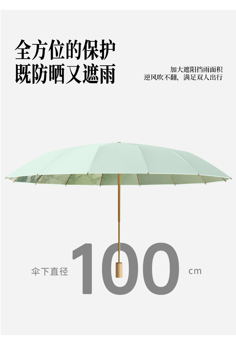 16 뼈 손으로 3 배 컬러 접착제 태양 우산 단단한 나무 손잡이 태양 우산 태양 보호 태양 우산 재고 원피스 배달
