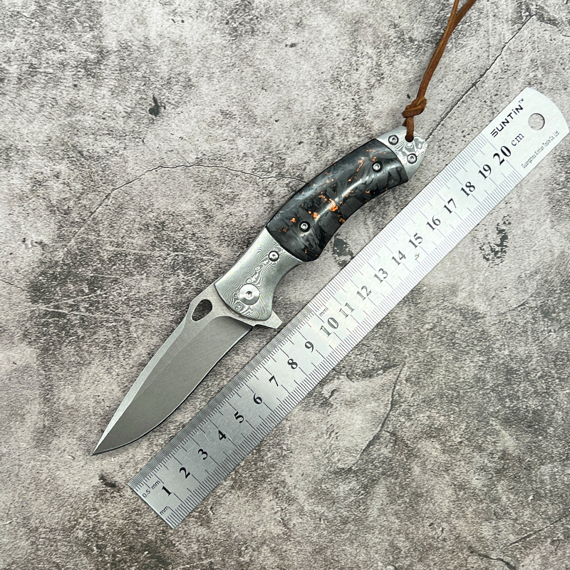 야외 수제 접이식 칼 위조 Wushi 강철 탄소 섬유 손잡이 휴대용 야생 포켓 칼 날카로운 생존 칼