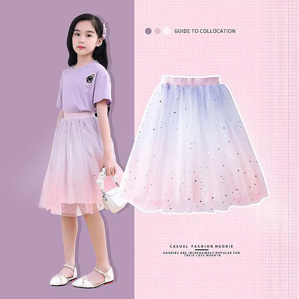 폭발성 아동복 도매 소녀 그라데이션 서양식 치마 여름 별이 빛나는 하늘 치마 어린 소녀 봄과 가을 공주 치마스토어 가기