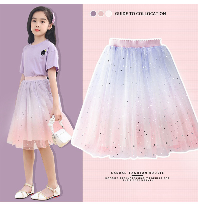 폭발성 아동복 도매 소녀 그라데이션 서양식 치마 여름 별이 빛나는 하늘 치마 어린 소녀 봄과 가을 공주 치마