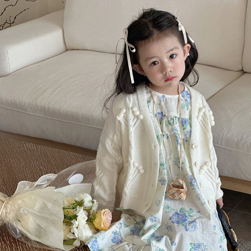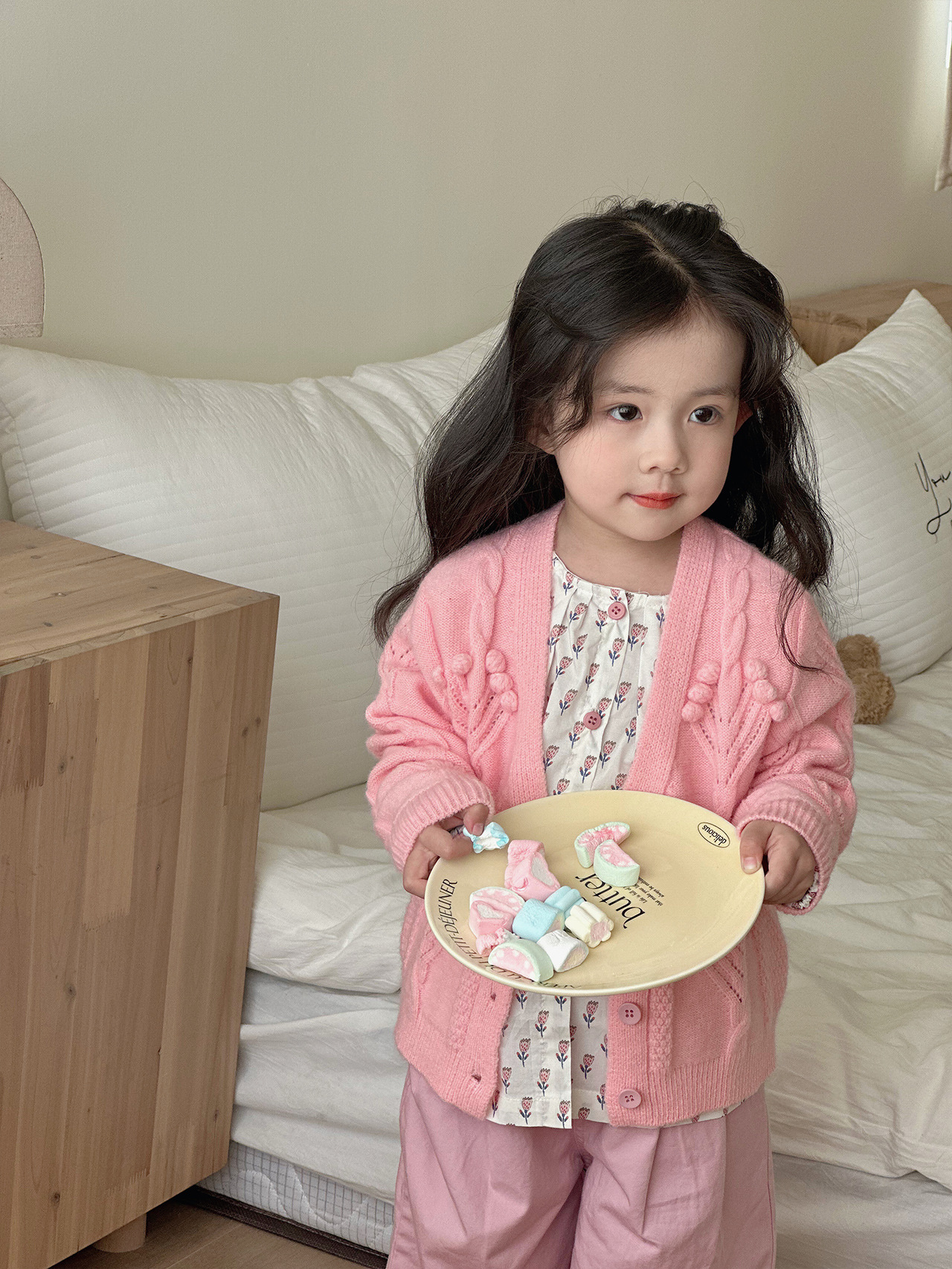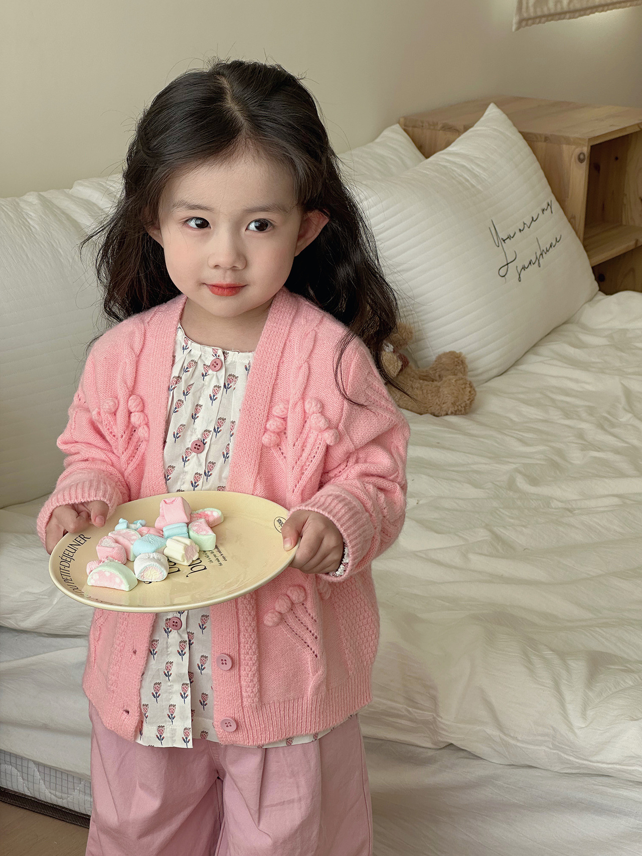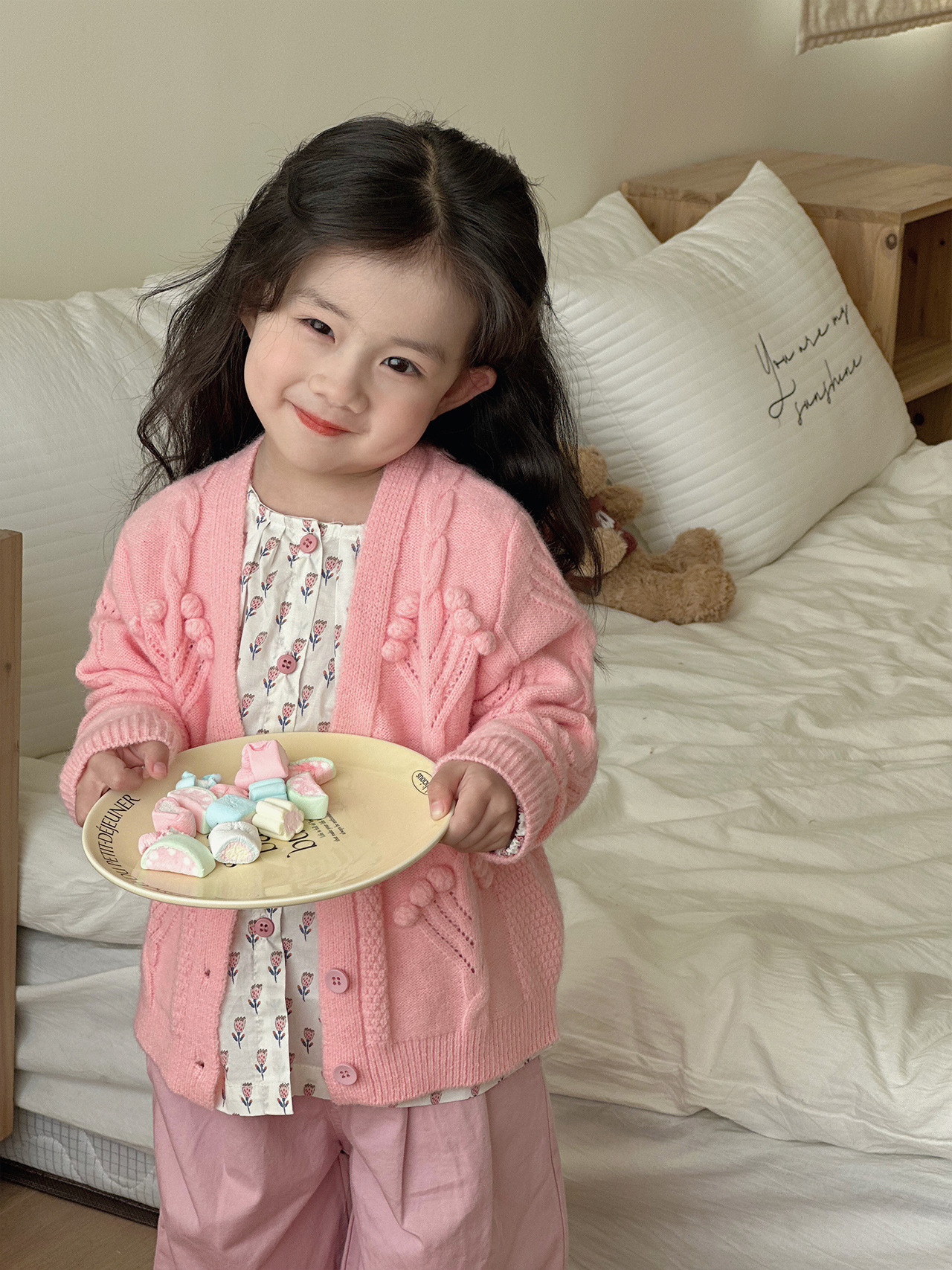 【기간한정 50% off】여아 스웨터 가디건 봄가을 아동용 한국 스타일 달콤한 꽃무늬 상의 아기 니트 스웨터