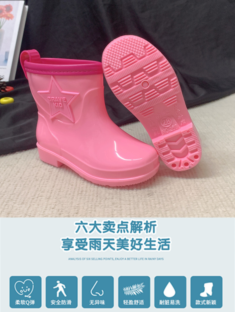 어린이 장화 소년 소녀 경량 미끄럼 방지 장화 방수 고무 신발 학생 중간 및 큰 어린이 물 신발