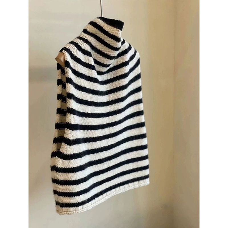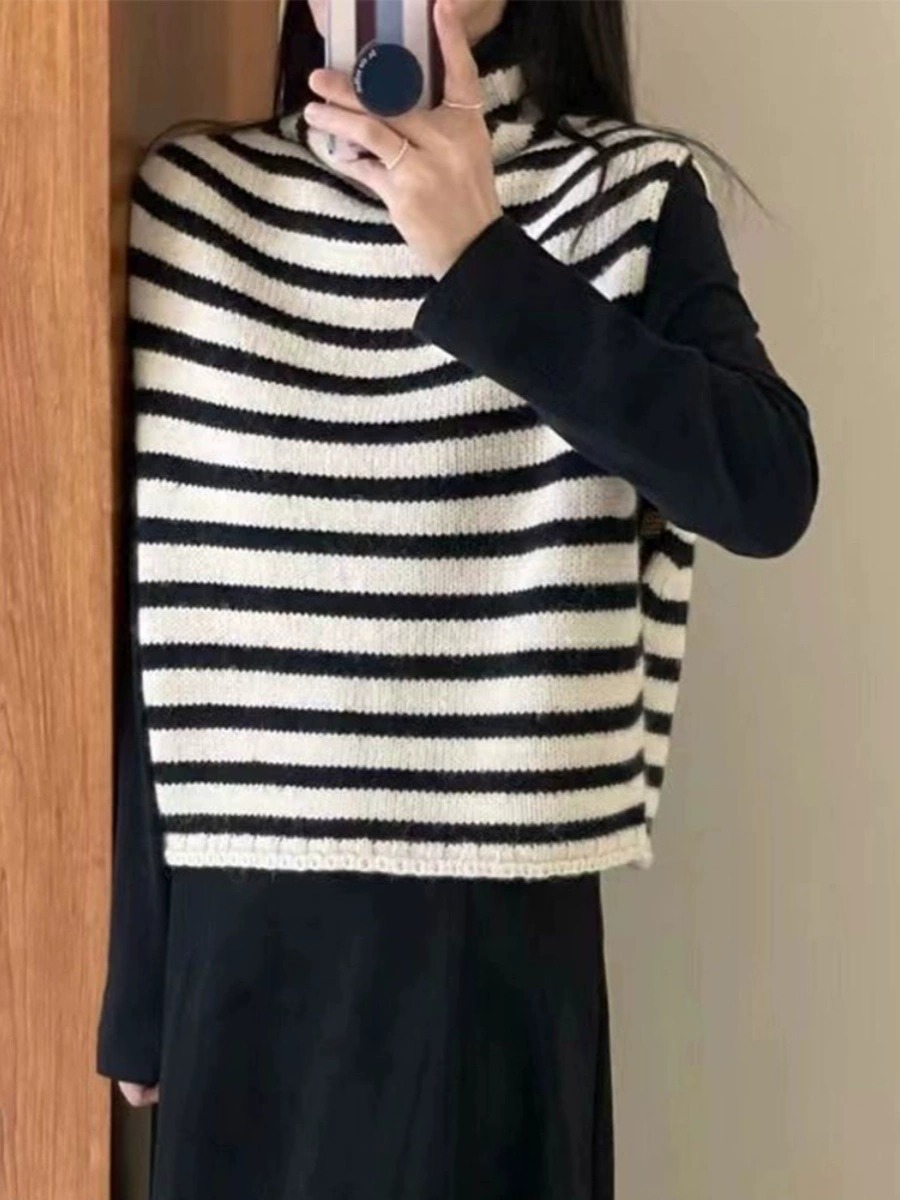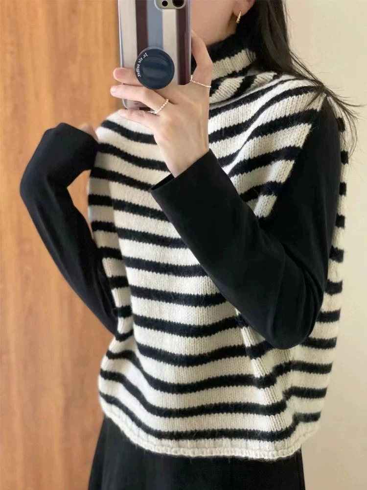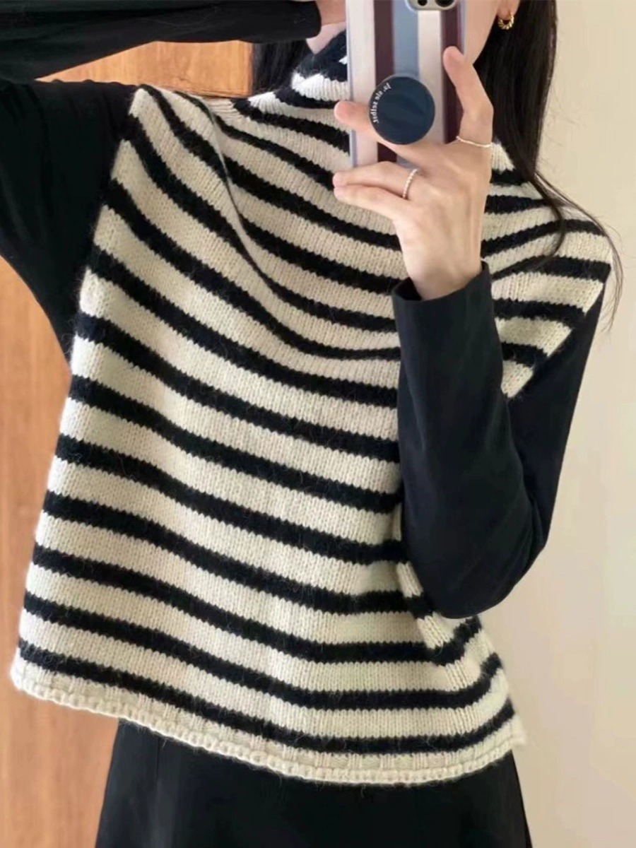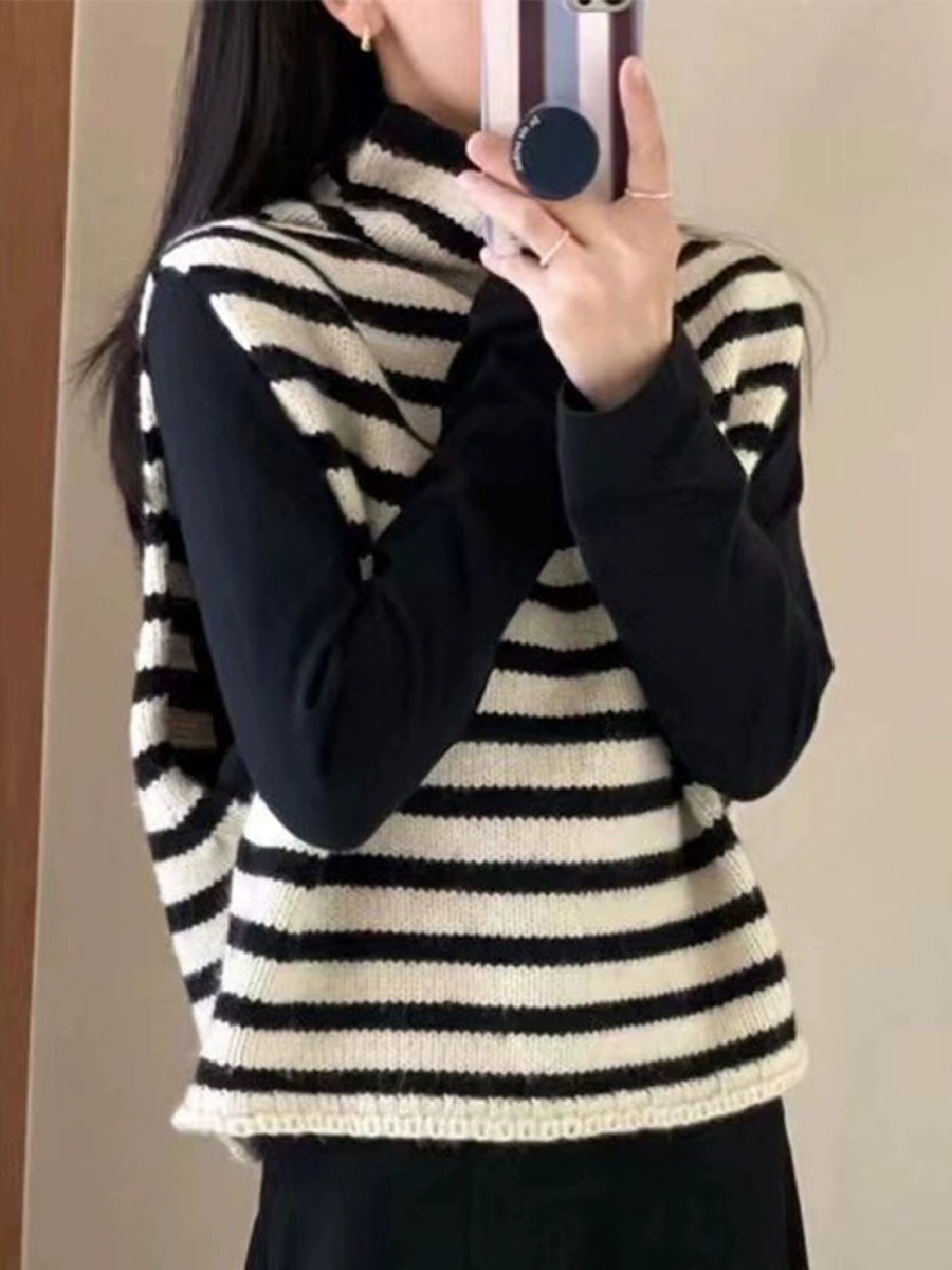 가게 주인이 분노에 밀어 넣었고, 상체가 너무 온화했다! 가을과 겨울 여성을위한 높은 칼라 게으른 스타일 두꺼운 바늘 줄무늬 니트 조끼스토어 가기