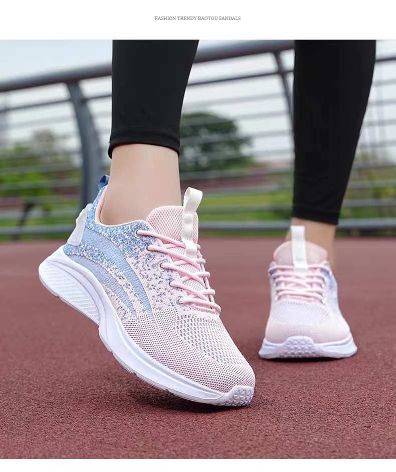 국경 간 여성 신발 봄과 가을 새로운 비행 짠 부드러운 바닥 스포츠 여성 메쉬 통기성 경량 캐주얼 신발 올 매치 양말 달리기