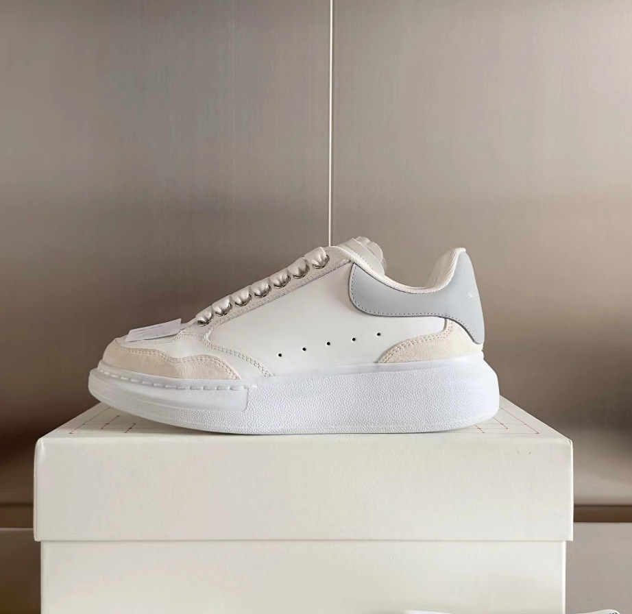 Gao Dingyuan 표준 2024 새로운 McQueen 화이트 슈즈 여성 정품 가죽 올 매치 컬러 매칭 두꺼운 밑창 높이 증가 보드 슈즈스토어 가기