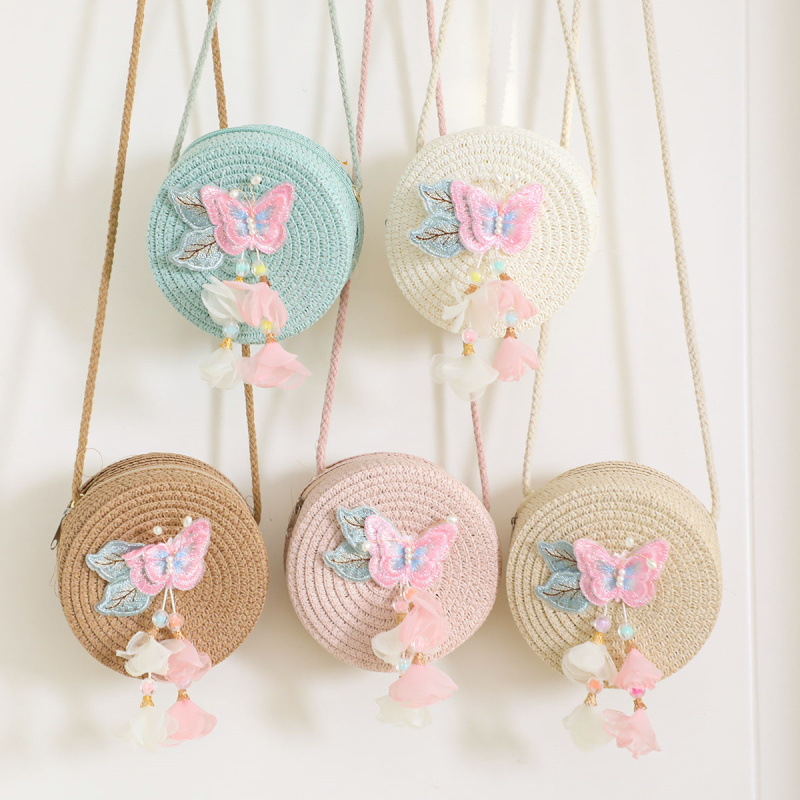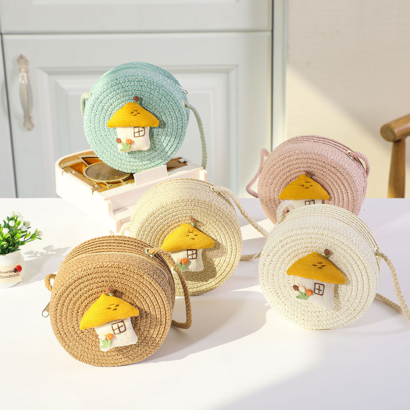 새로운 어린이 밀짚 가방 귀여운 만화 어린이 동전 지갑 크로스 바디 작은 둥근 가방 공장 직접 국경 배달스토어 가기