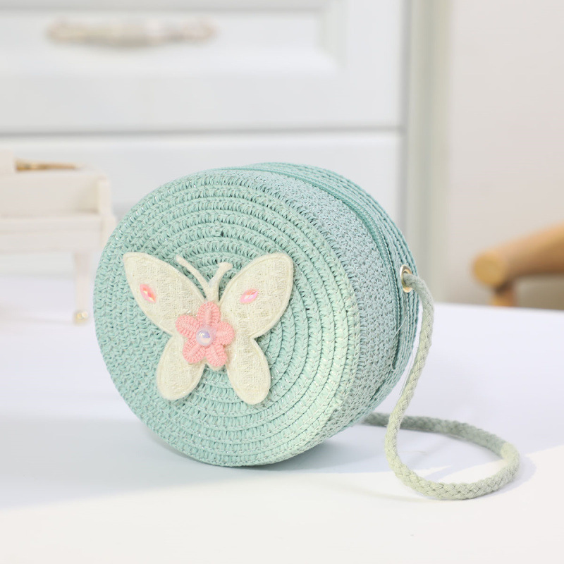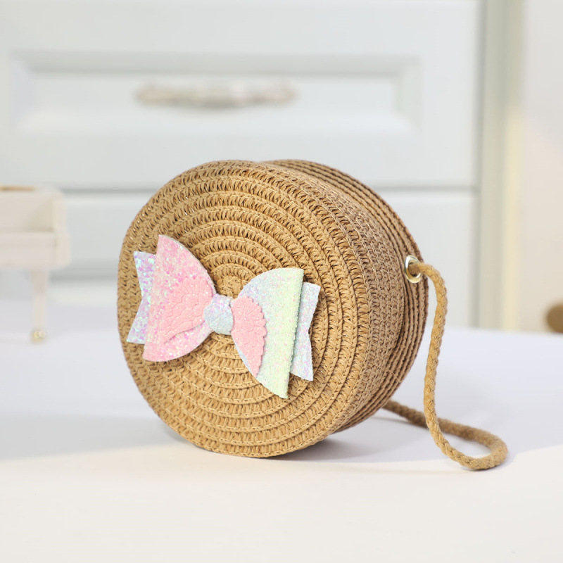 새로운 어린이 밀짚 가방 귀여운 만화 어린이 동전 지갑 크로스 바디 작은 둥근 가방 공장 직접 국경 배달