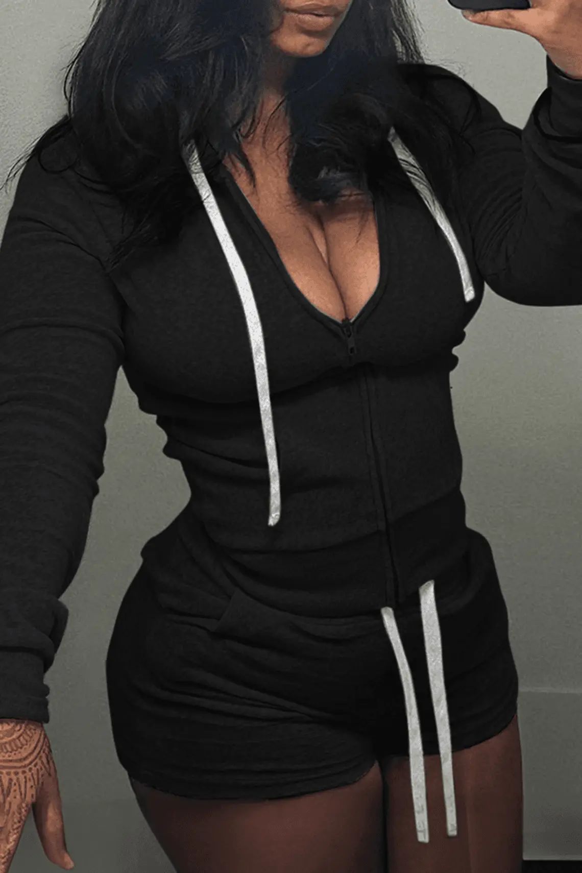 유럽과 미국의 국경 간 여성 의류 단색 지퍼 회색 반바지 세트스토어 가기