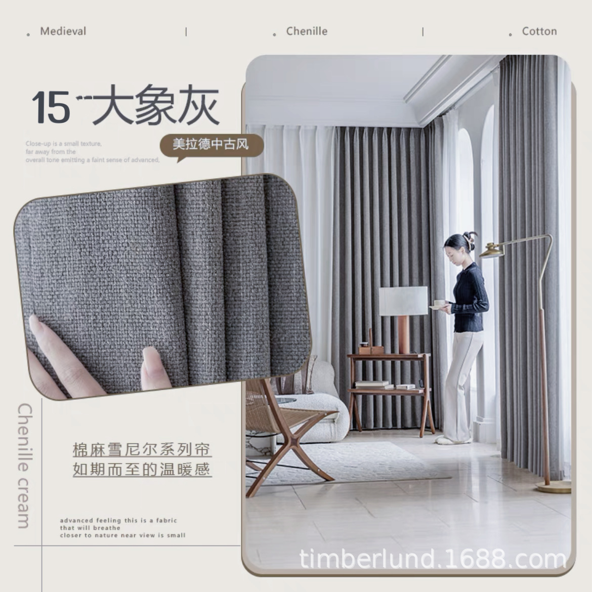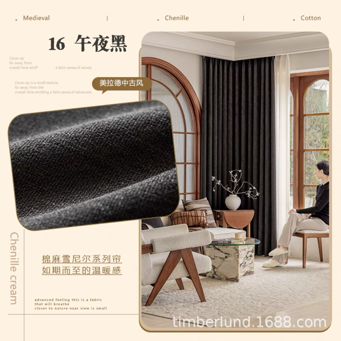 골동품 chenille 커튼 복고풍 다크 그린 침실 음영 고급 감각 거실 라이트 럭셔리 프랑스 블랙 엣지 커튼스토어 가기
