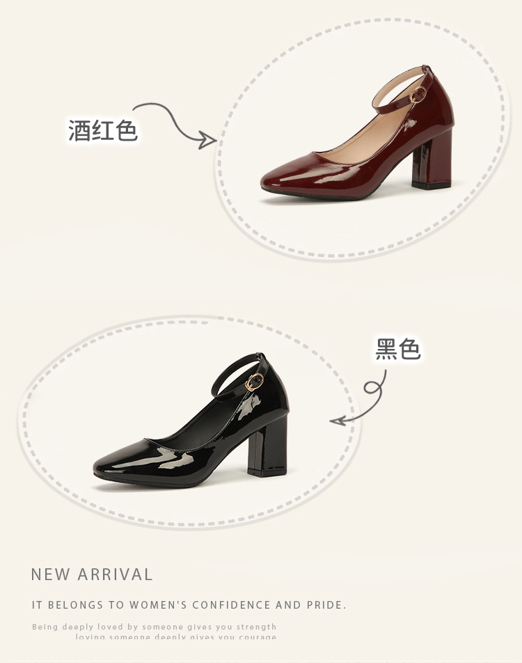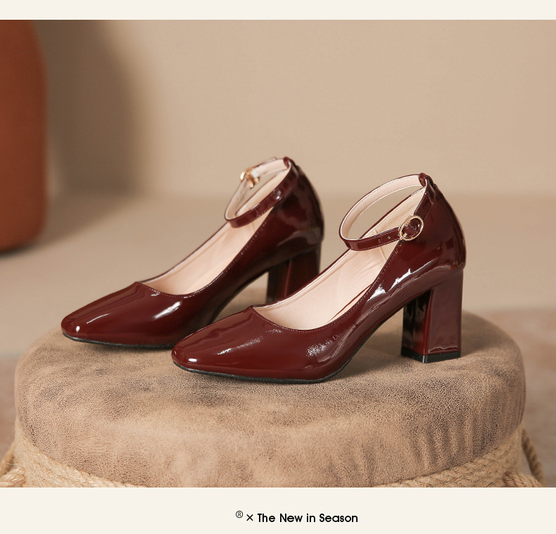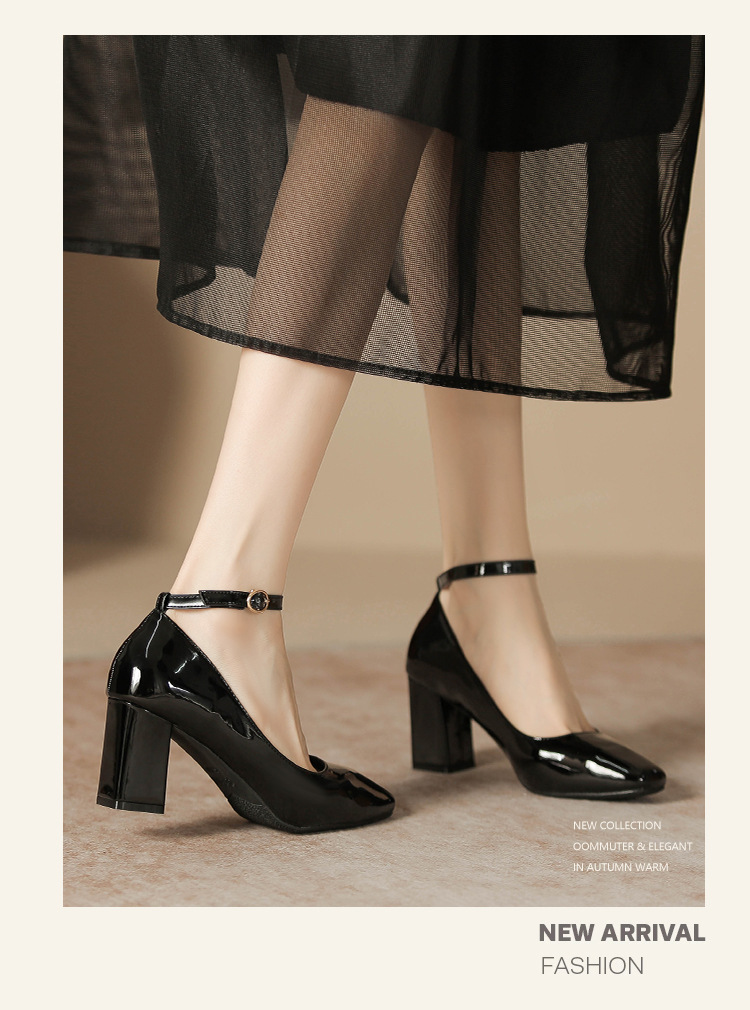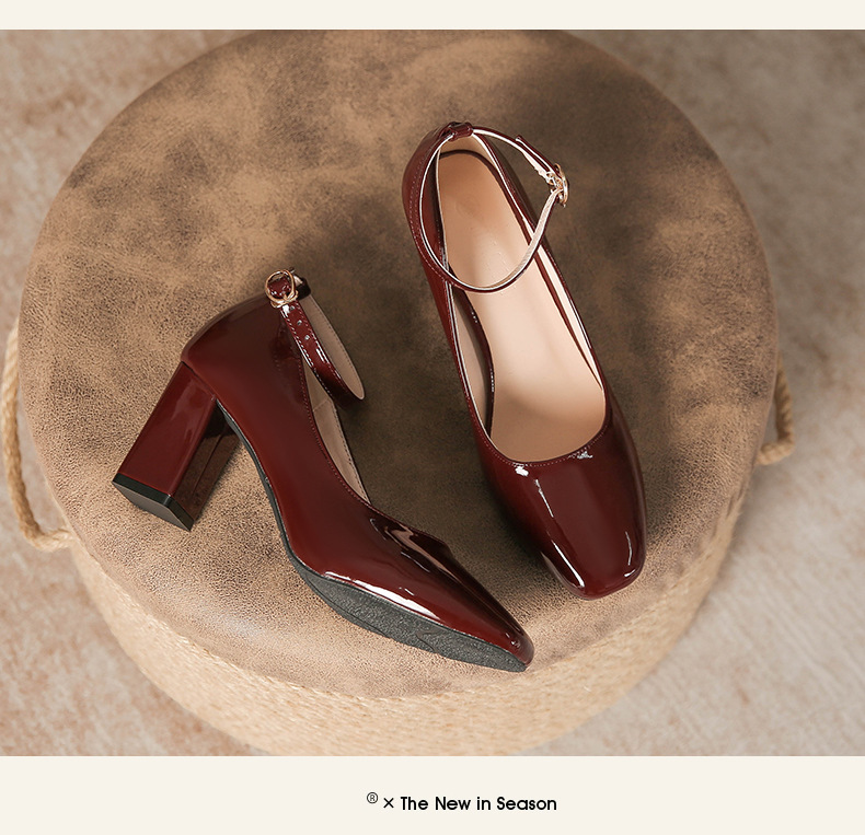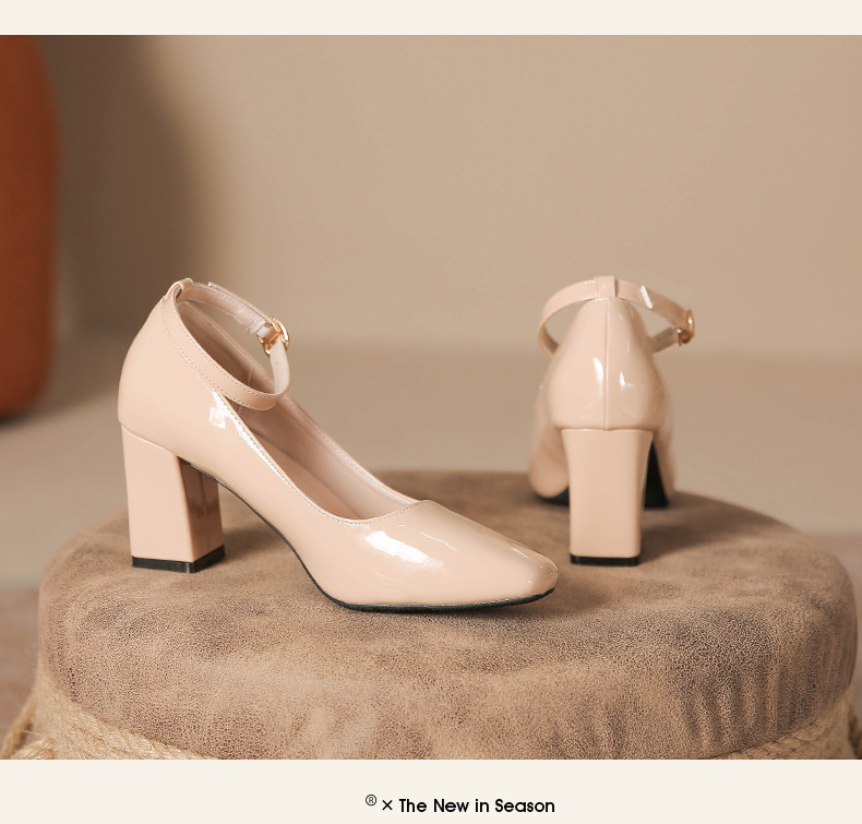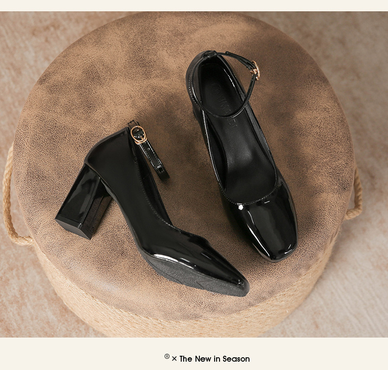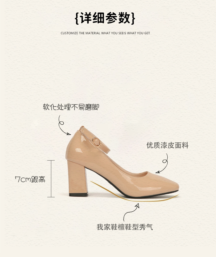 2024 새로운 정사각형 발가락 청키 힐 하이힐 Mary Jane Buckle 청키 한 힐 여성 신발 플러스 사이즈 플러스 사이즈 확대 된 올 매칭스토어 가기