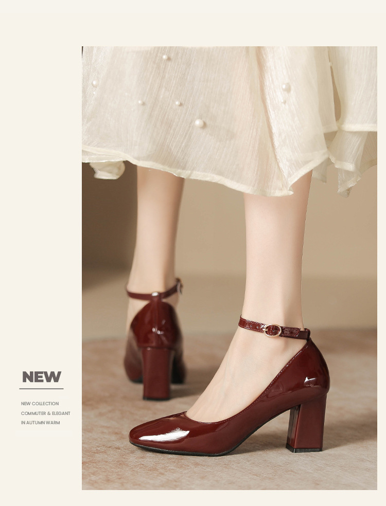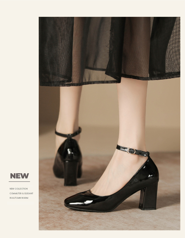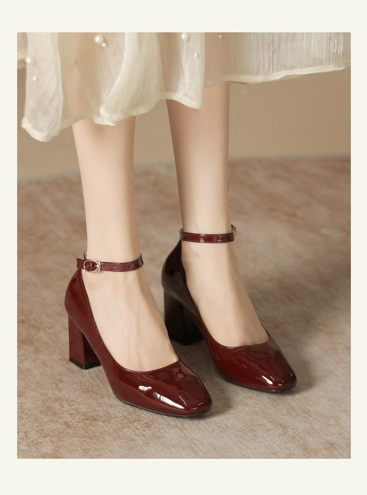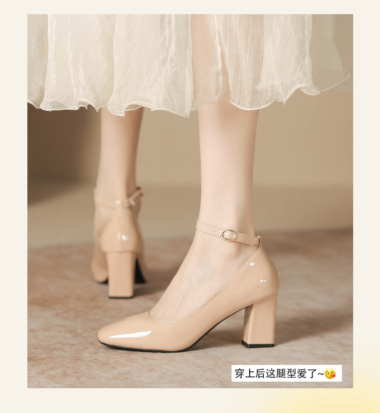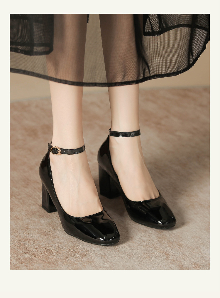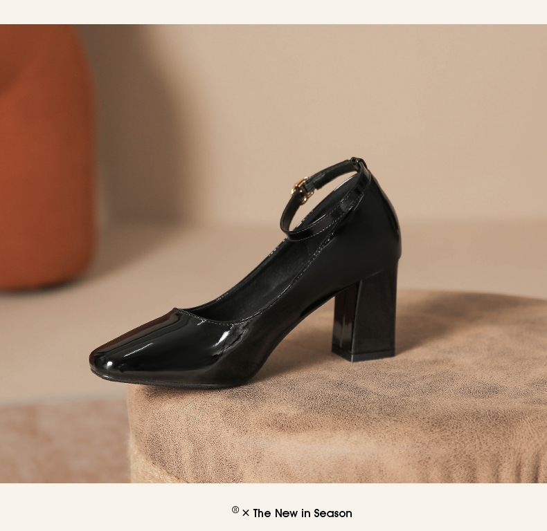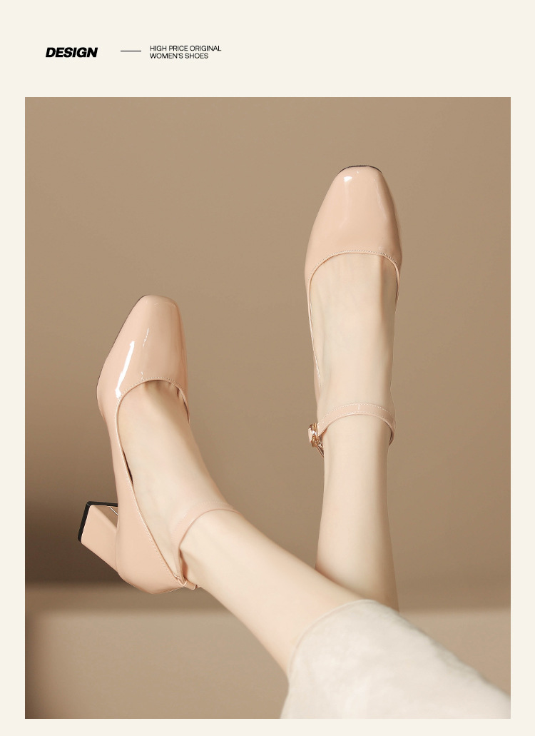 2024 새로운 정사각형 발가락 청키 힐 하이힐 Mary Jane Buckle 청키 한 힐 여성 신발 플러스 사이즈 플러스 사이즈 확대 된 올 매칭스토어 가기