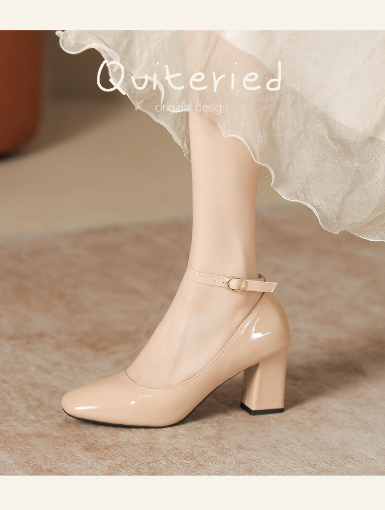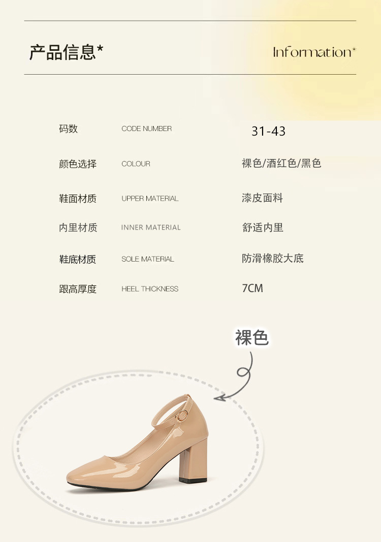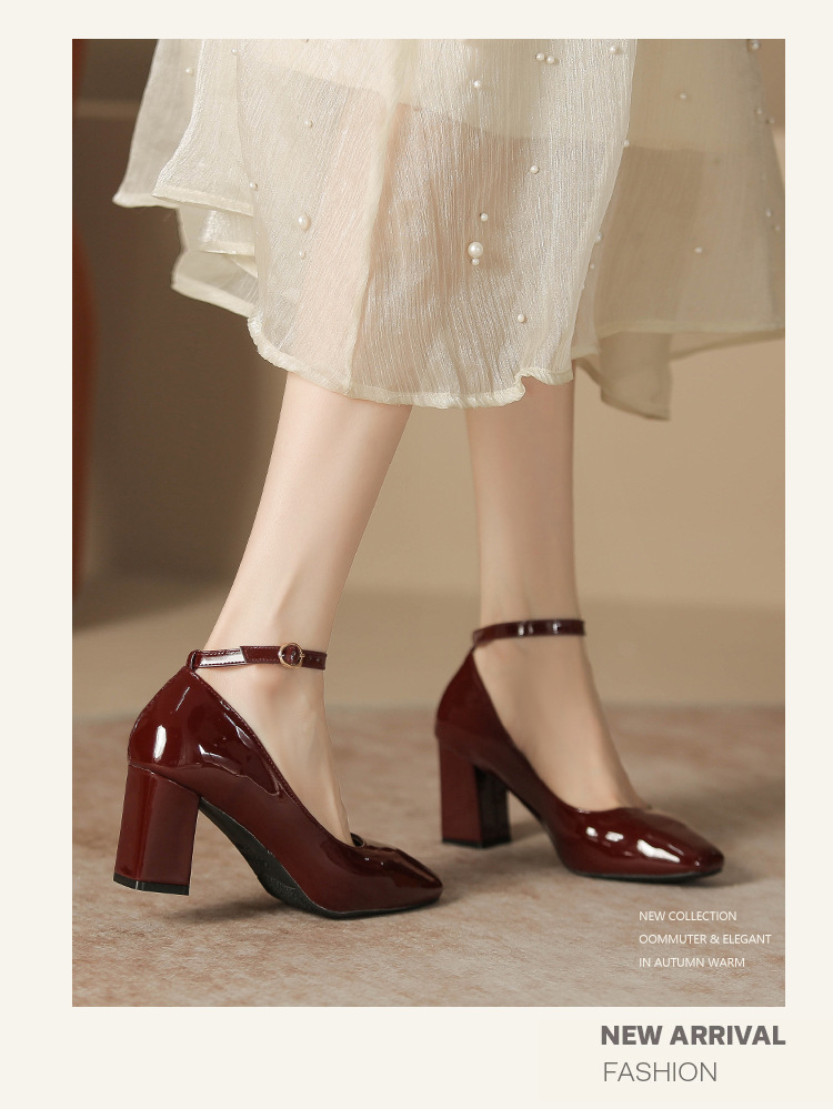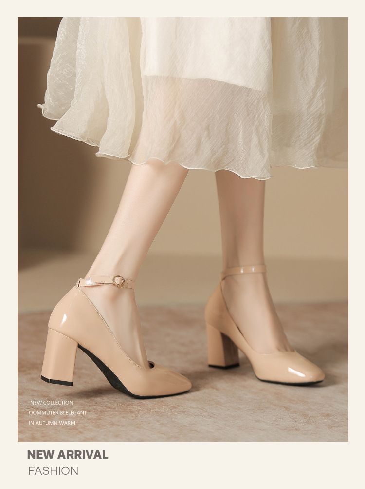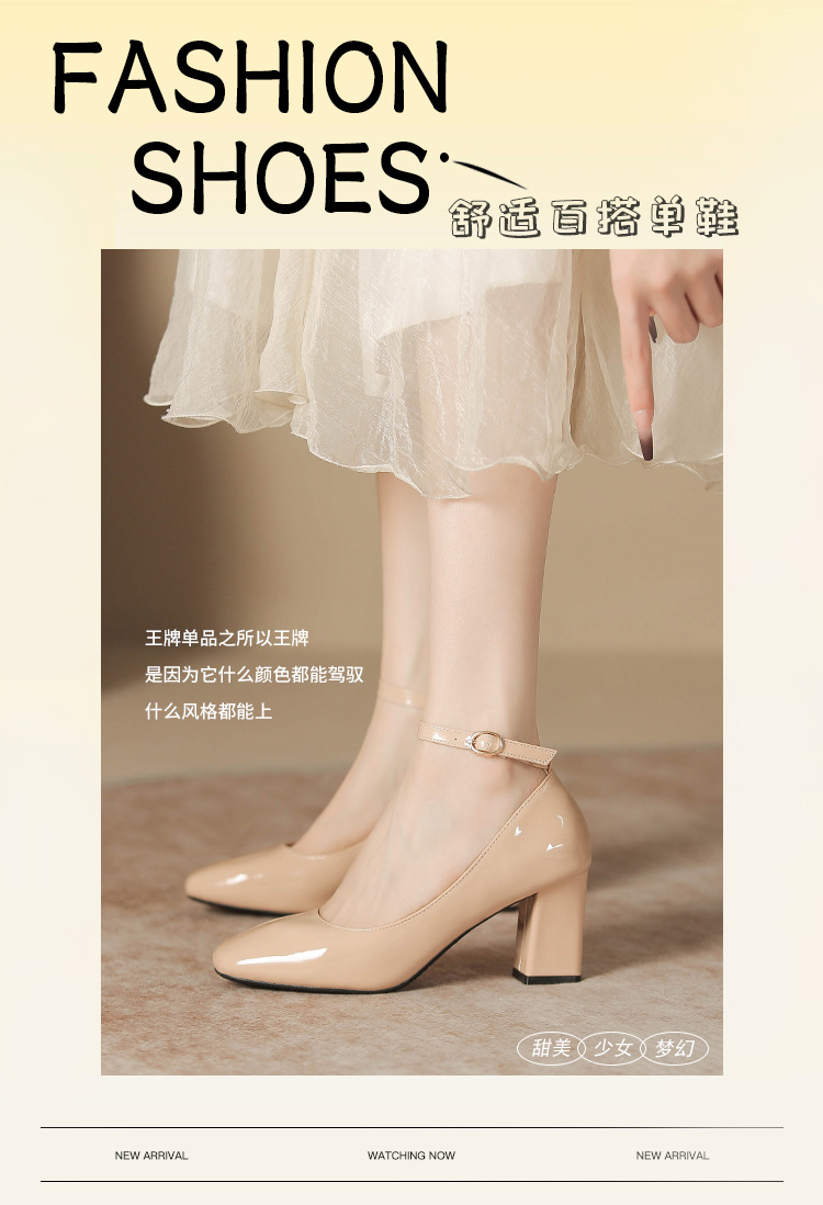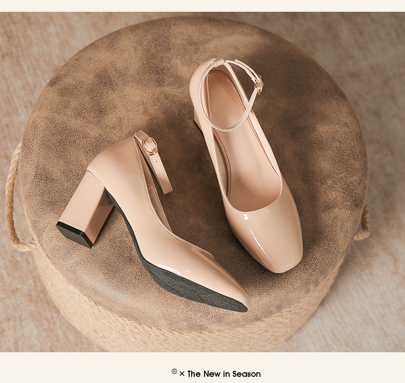 2024 새로운 정사각형 발가락 청키 힐 하이힐 Mary Jane Buckle 청키 한 힐 여성 신발 플러스 사이즈 플러스 사이즈 확대 된 올 매칭스토어 가기