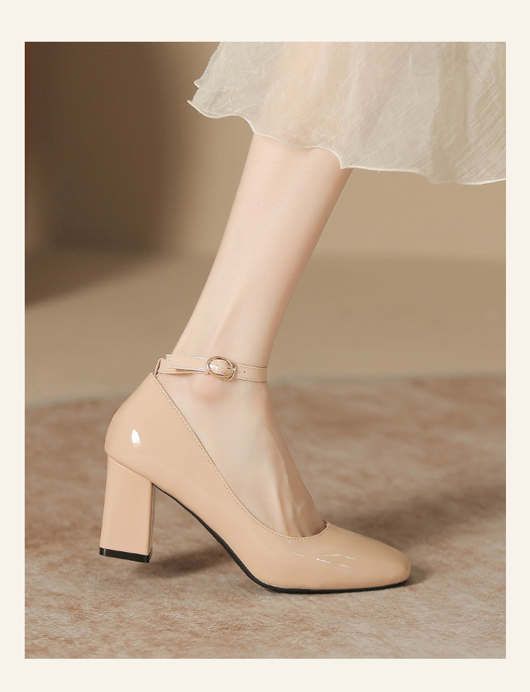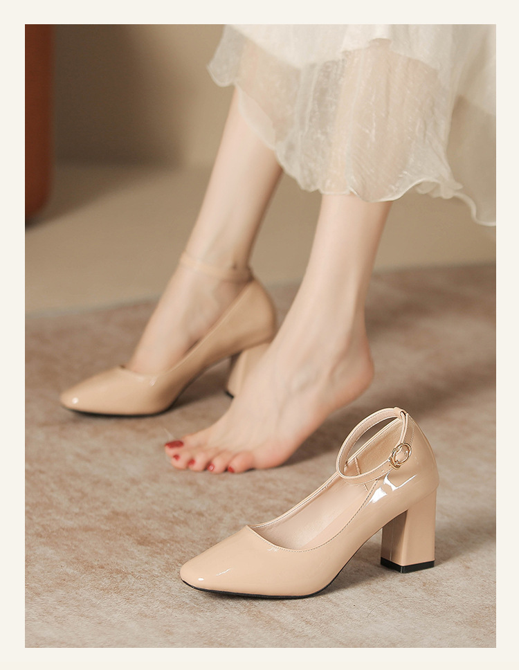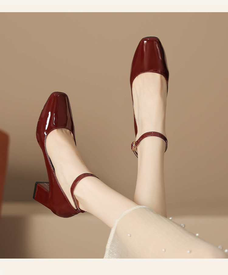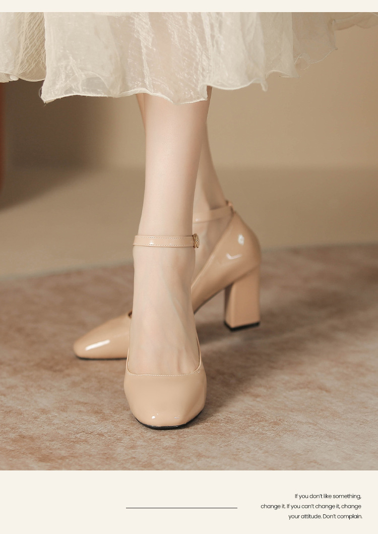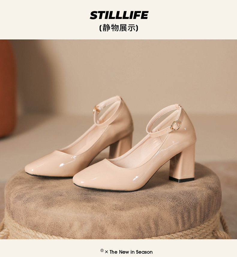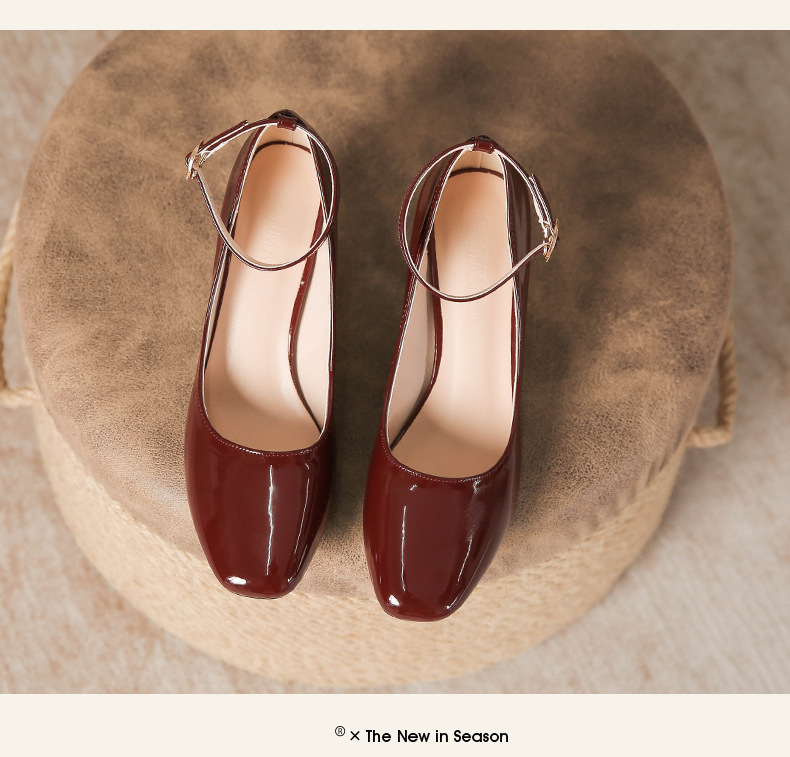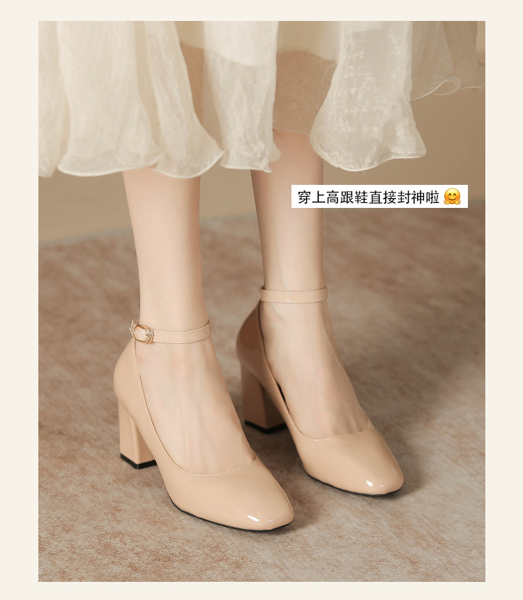 2024 새로운 정사각형 발가락 청키 힐 하이힐 Mary Jane Buckle 청키 한 힐 여성 신발 플러스 사이즈 플러스 사이즈 확대 된 올 매칭스토어 가기