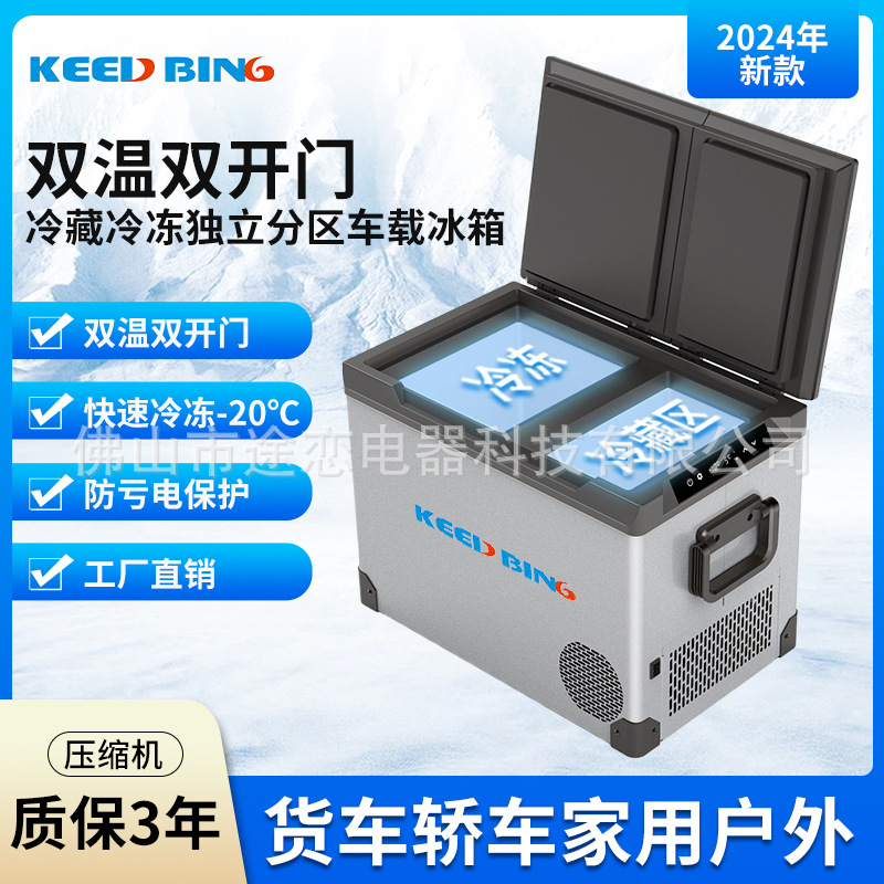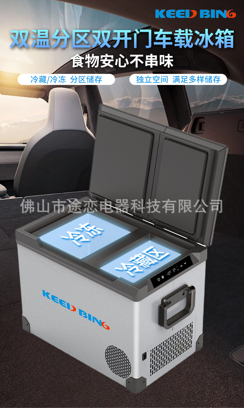 新品车载冰箱,双温双区域双开门,可达-20度。可同步实现冷冻和冷藏。