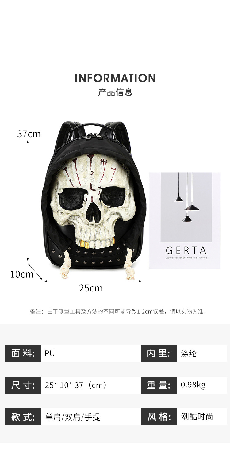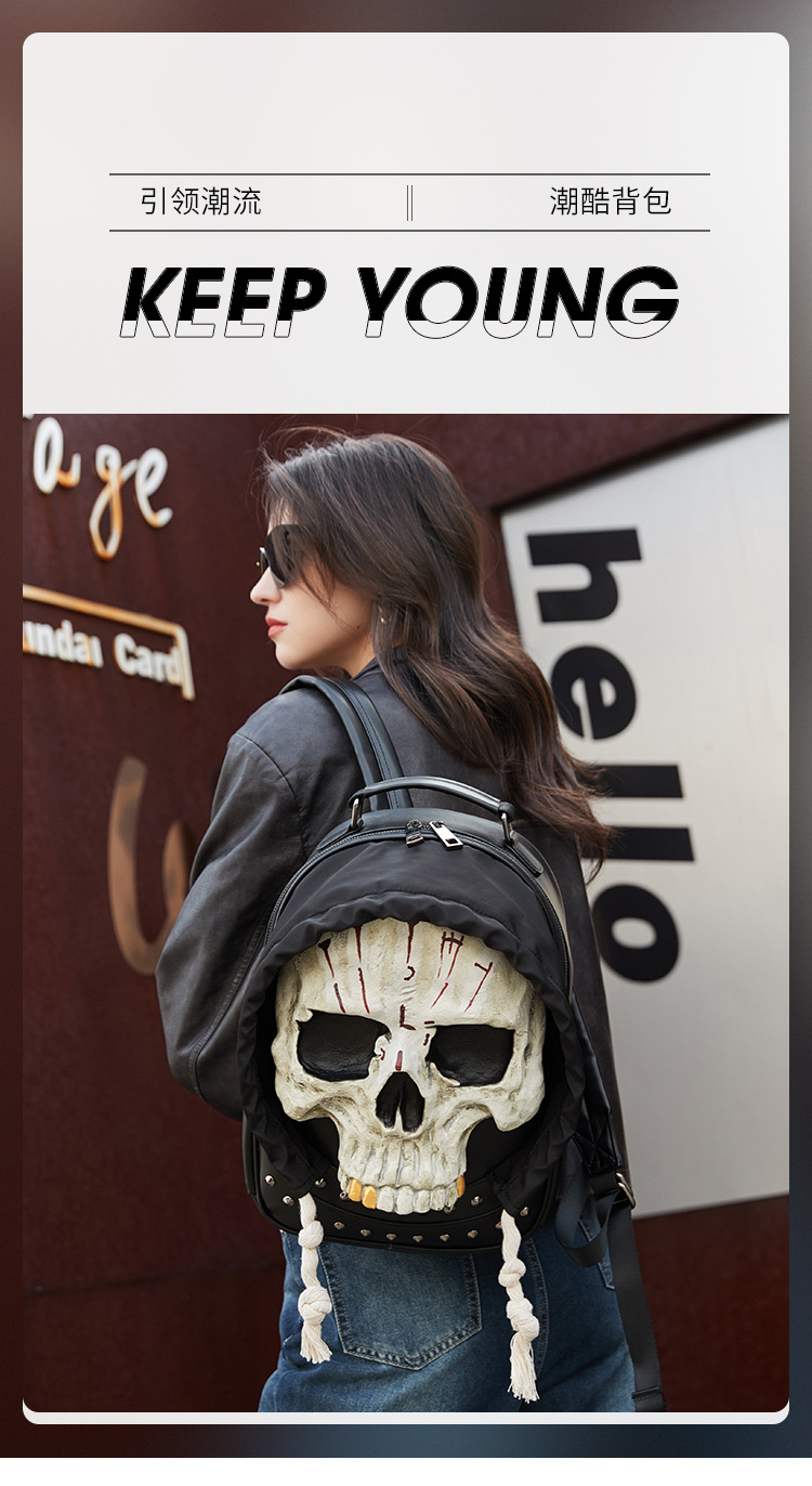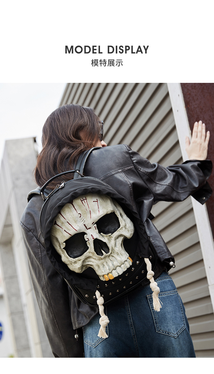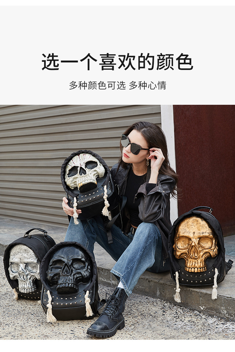 광주 국경 아마존 리벳 백팩 할로윈 3D 재미있는 성격 두개골 남성과 여성 배낭 도매