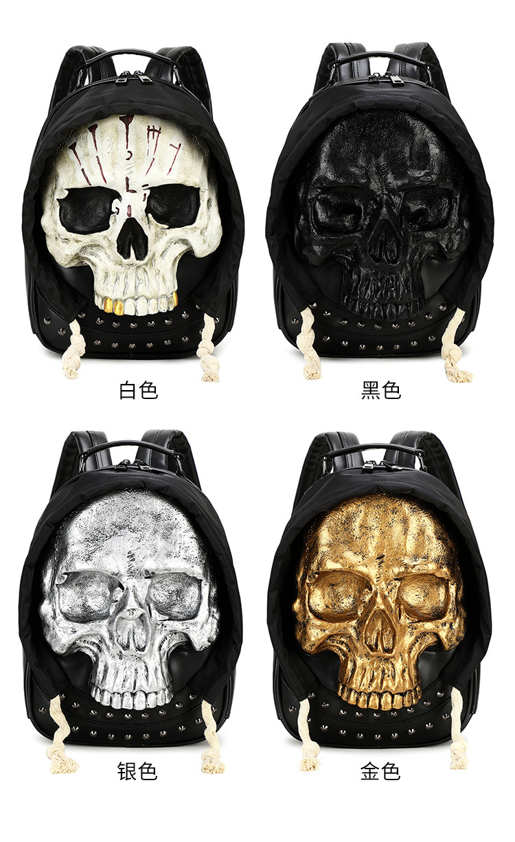 광주 국경 아마존 리벳 백팩 할로윈 3D 재미있는 성격 두개골 남성과 여성 배낭 도매스토어 가기
