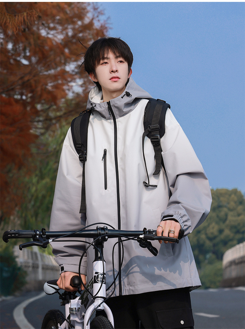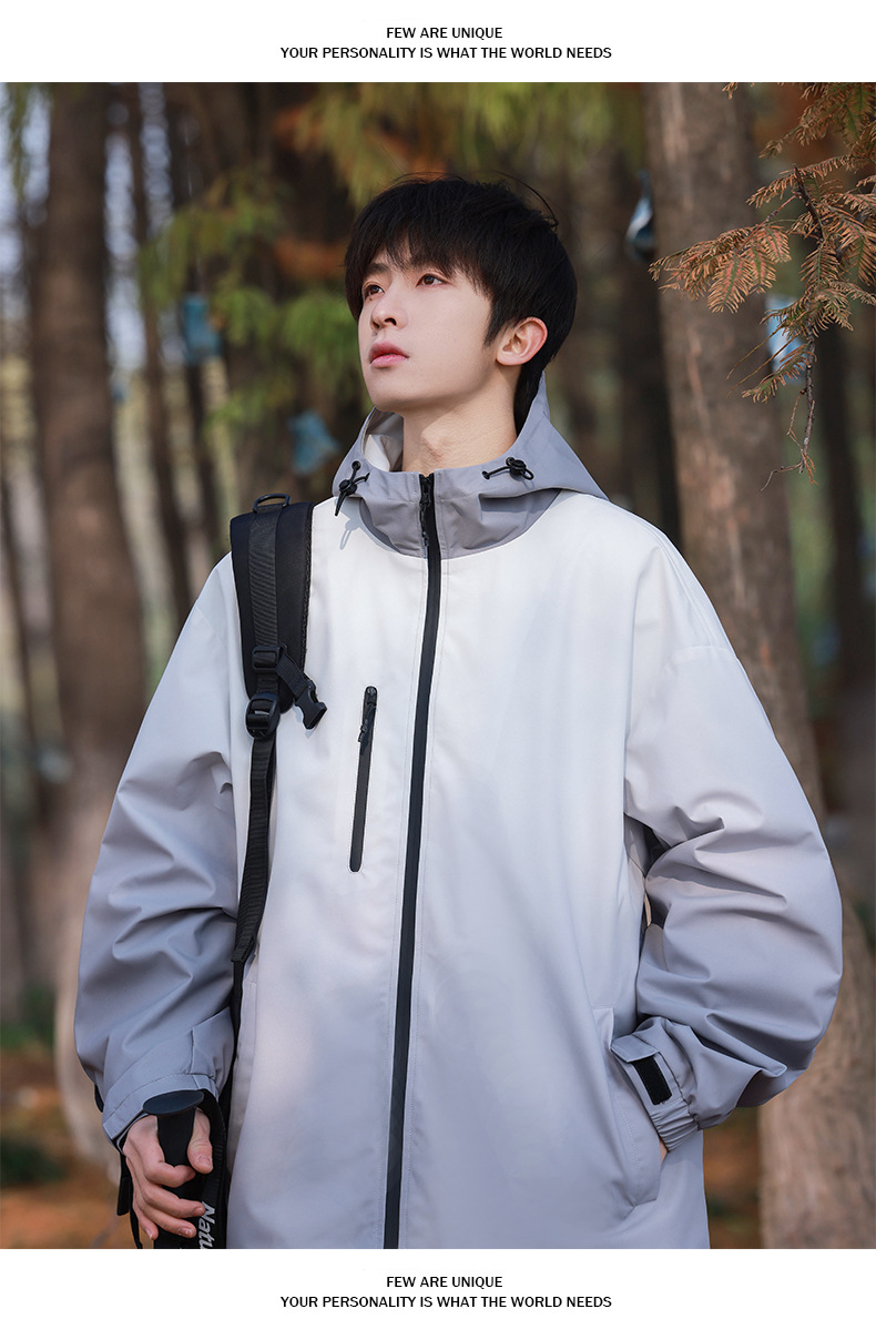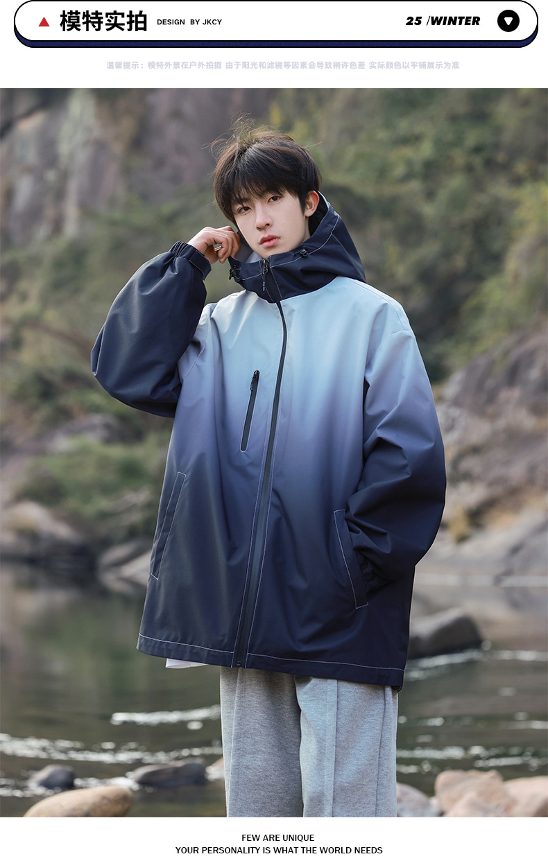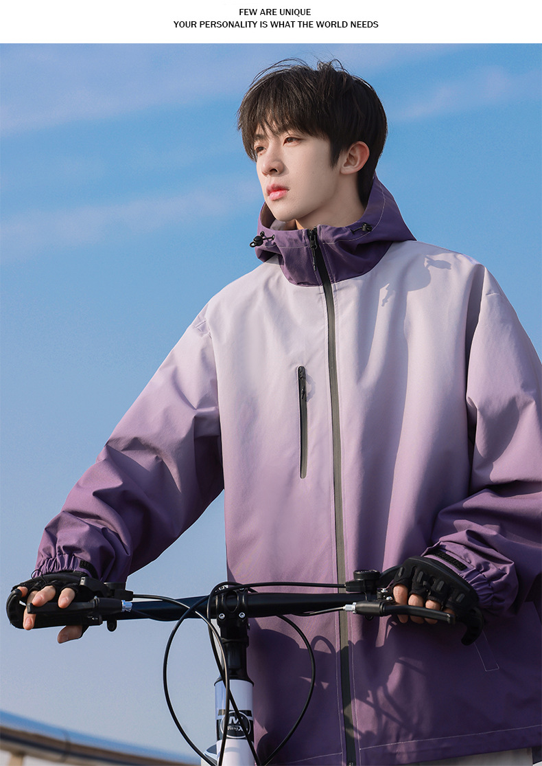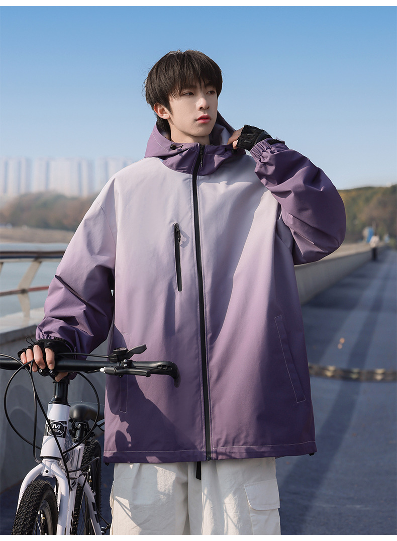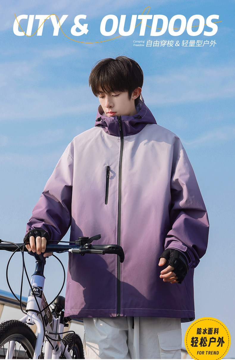 고급 그라디언트 재킷 남성 2024 봄 새로운 Pu Shuai 후드 등산 방수 방풍 작업복 재킷스토어 가기