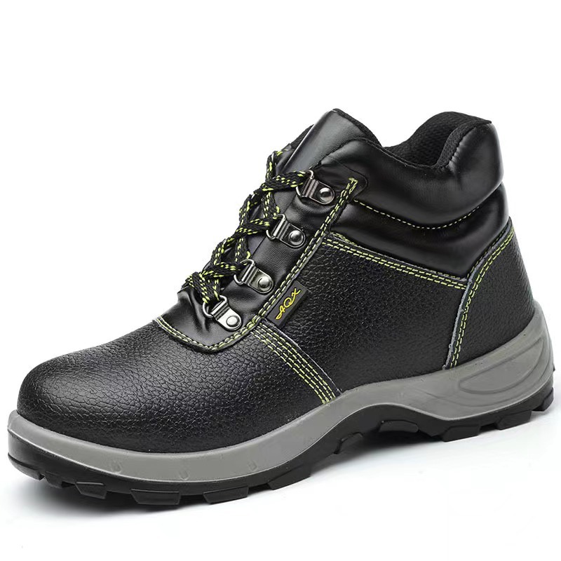 솔리드 바텀 미드탑 노동 보호 신발, 가죽 혀 방지, 방수, 충격 방지, 펑크 방지 및 내유성 안전화, 건설 현장 보호 신발스토어 가기