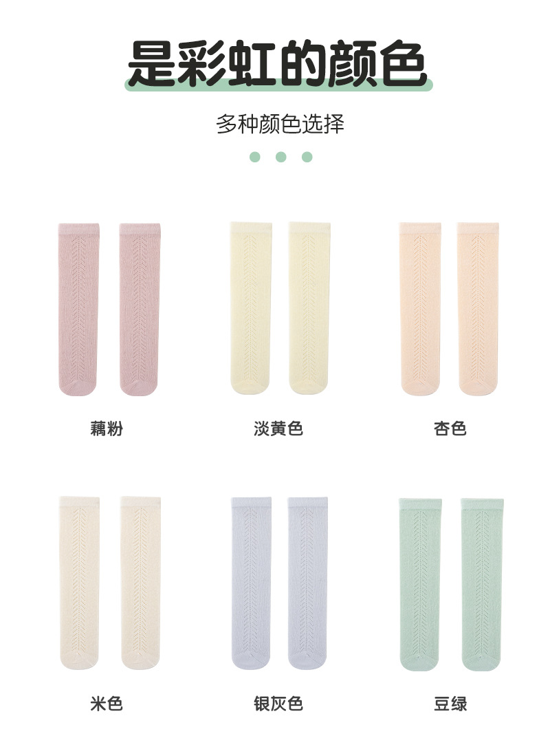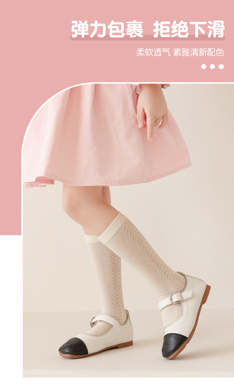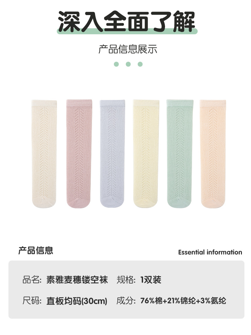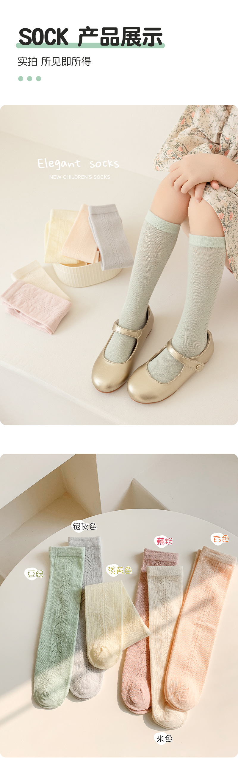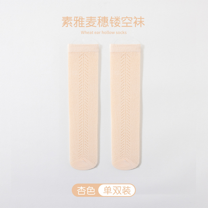 소녀 양말 2024 봄과 여름 새로운 한국 스타일 우아한 밀 귀 속이 빈 양말 아기 학생 중간 종아리 길이 양말 도매