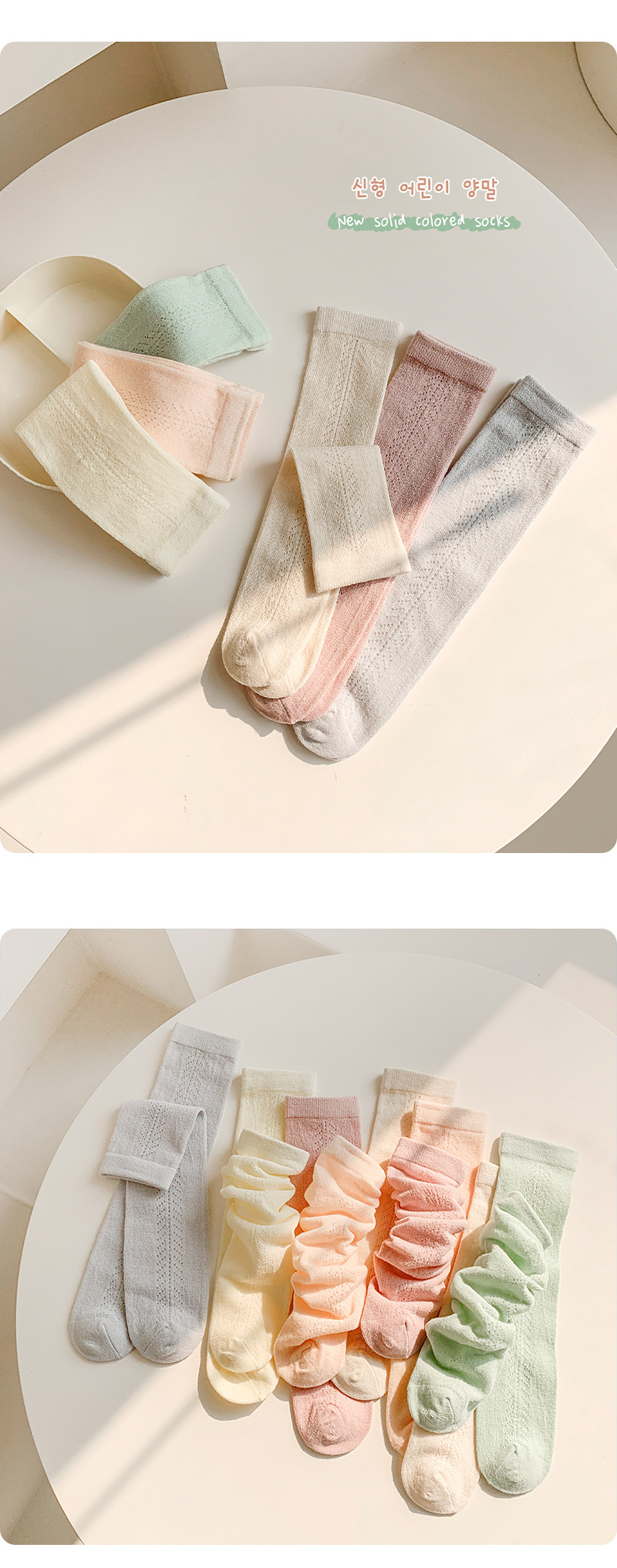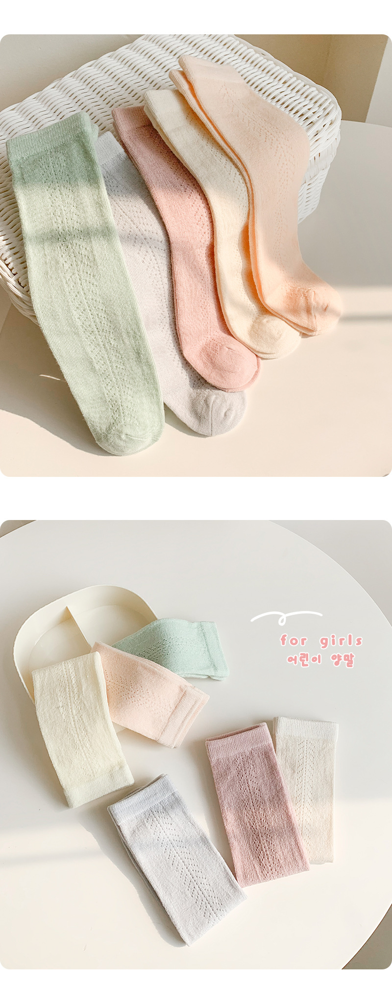 소녀 양말 2024 봄과 여름 새로운 한국 스타일 우아한 밀 귀 속이 빈 양말 아기 학생 중간 종아리 길이 양말 도매스토어 가기