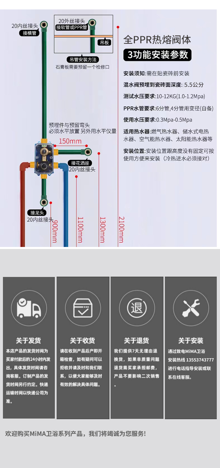 일체형 열융착 PPR 매립형 벽걸이 샤워기 세트, 사전 설치형 샤워기 노즐스토어 가기