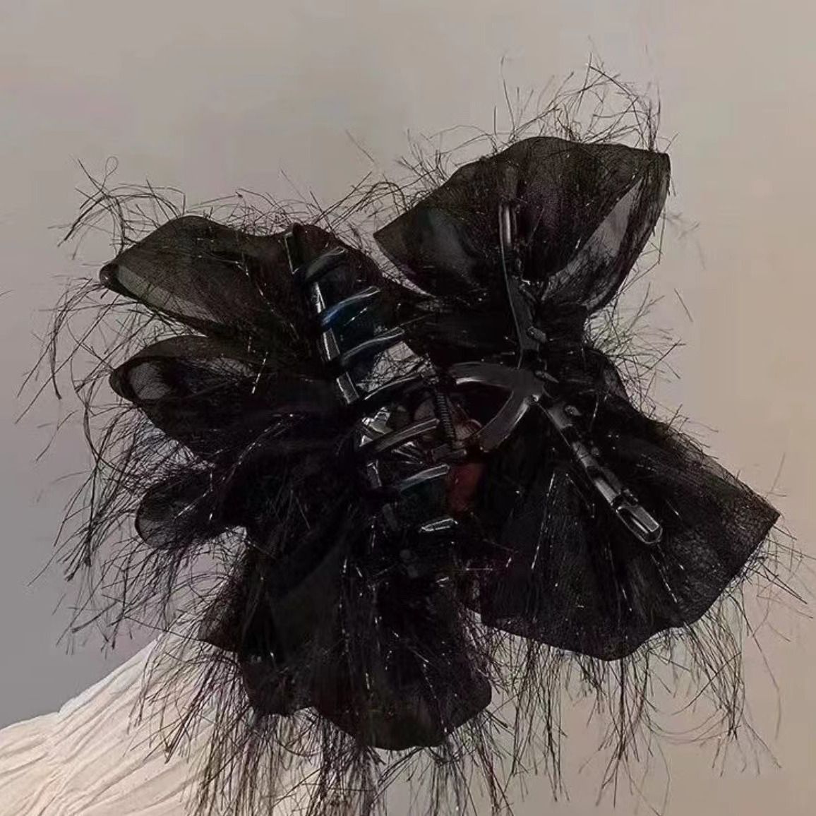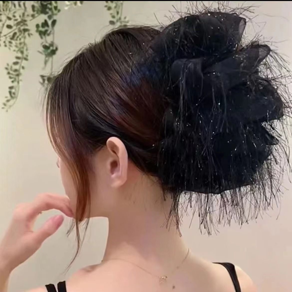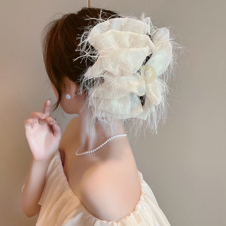다층 활 머리핀 여성 머리 머리 액세서리 큰 깃털 그립 고급 머리 디스플레이 머리 장식 상어 클립