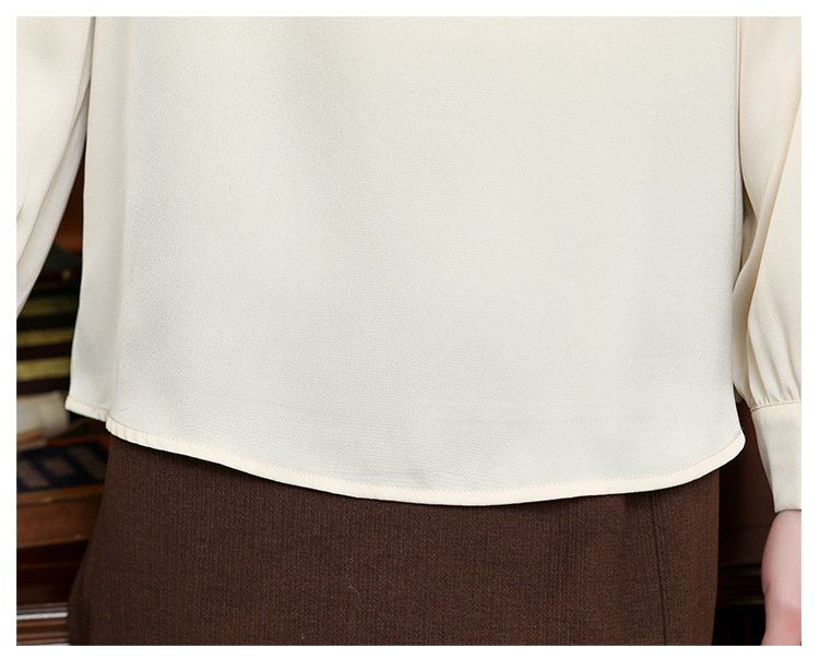 봄 새로운 서양식 작은 셔츠 긴 소매 여성 셔츠 2024 여성을위한 중공 모조 인형 칼라 새틴 쉬폰 셔츠 도매