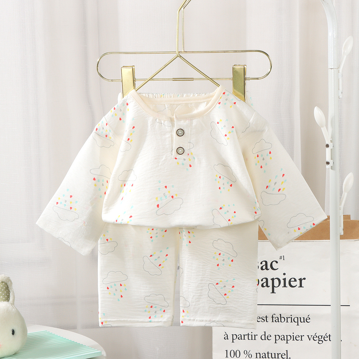 봄과 여름 새로운 남학생과 여학생의 집 착용 구름 면화 소재 유아 중대형 어린이 홈 의류스토어 가기