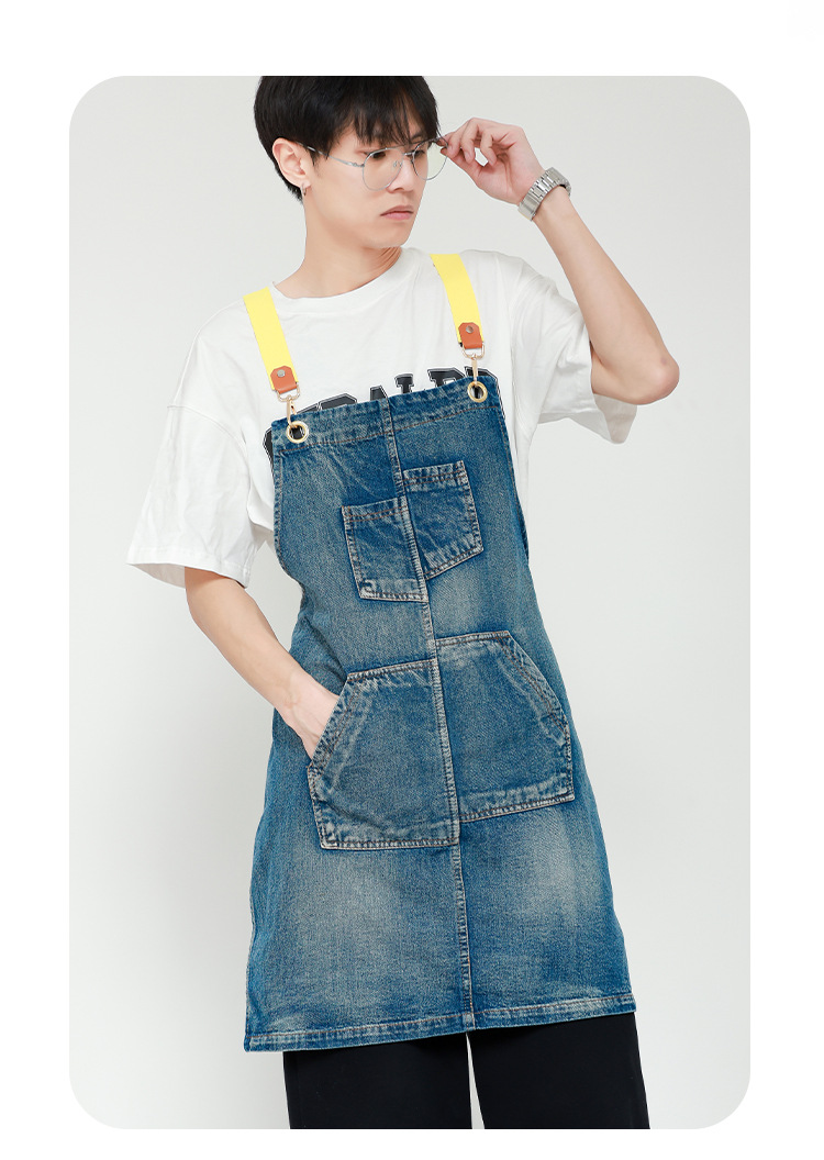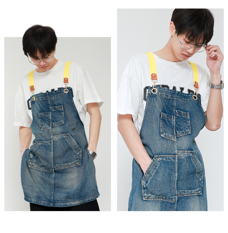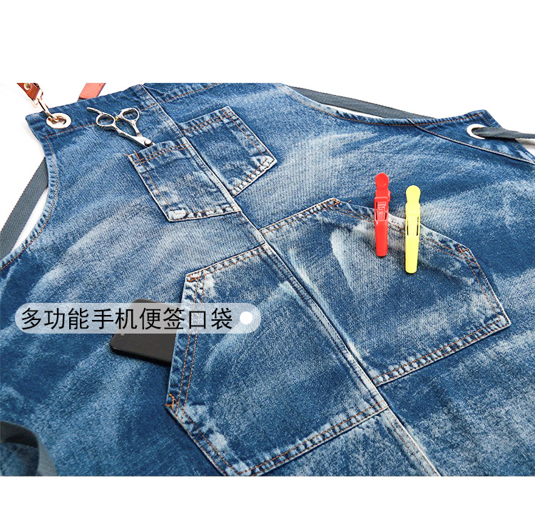 식당 데님 앞치마 우유 차 이발소 미용사 인쇄 로고 베이킹 샤워 바 커피 숍 작업복 인쇄스토어 가기