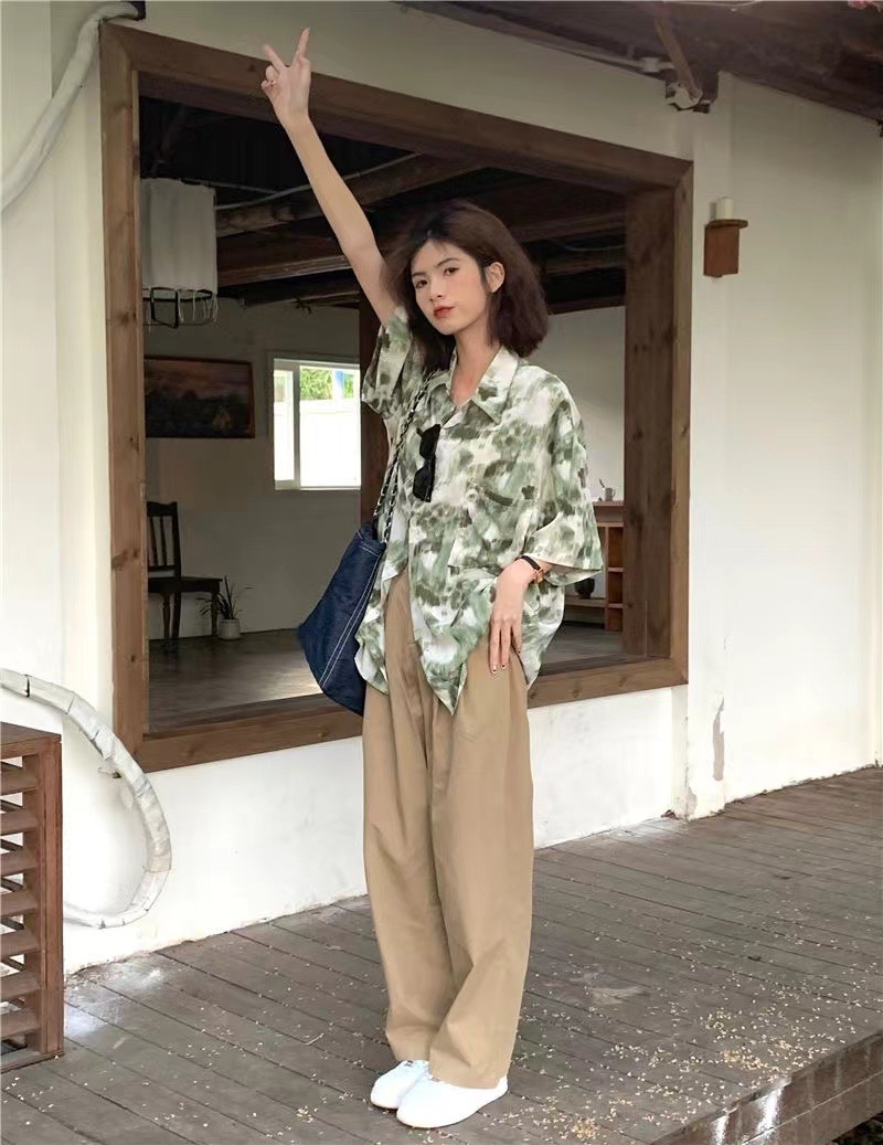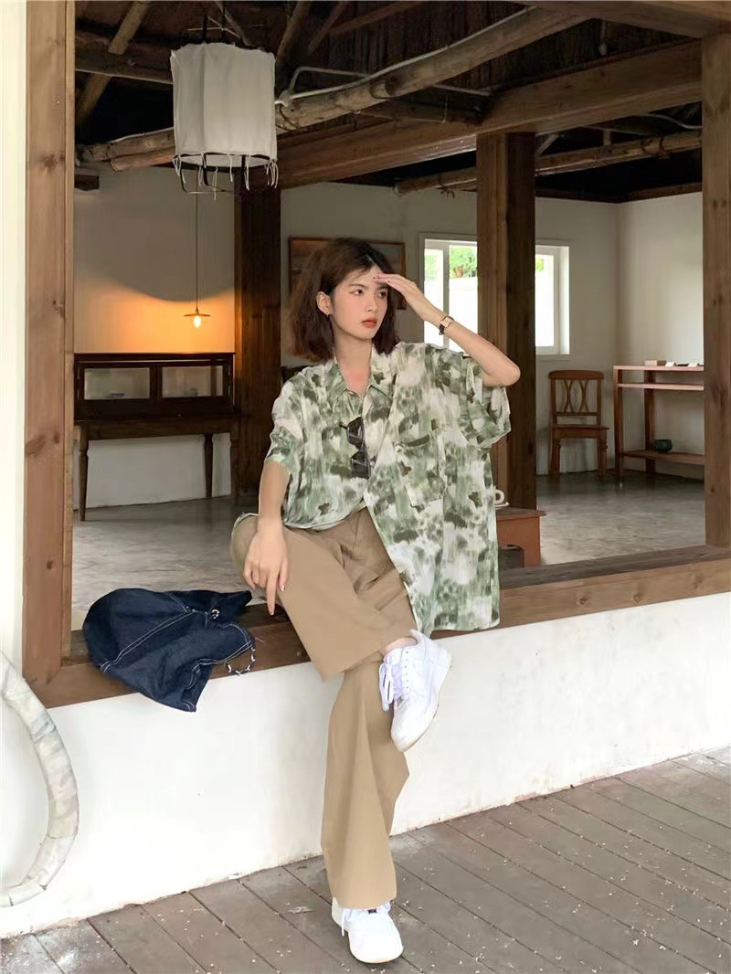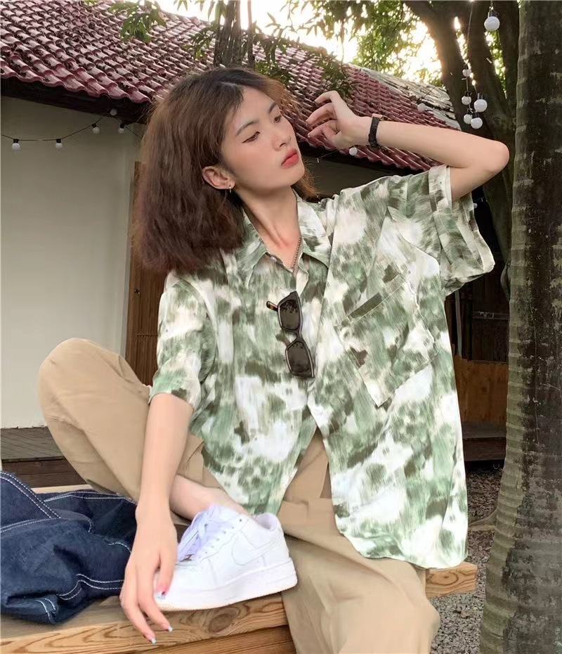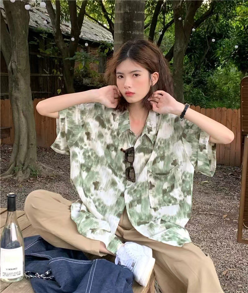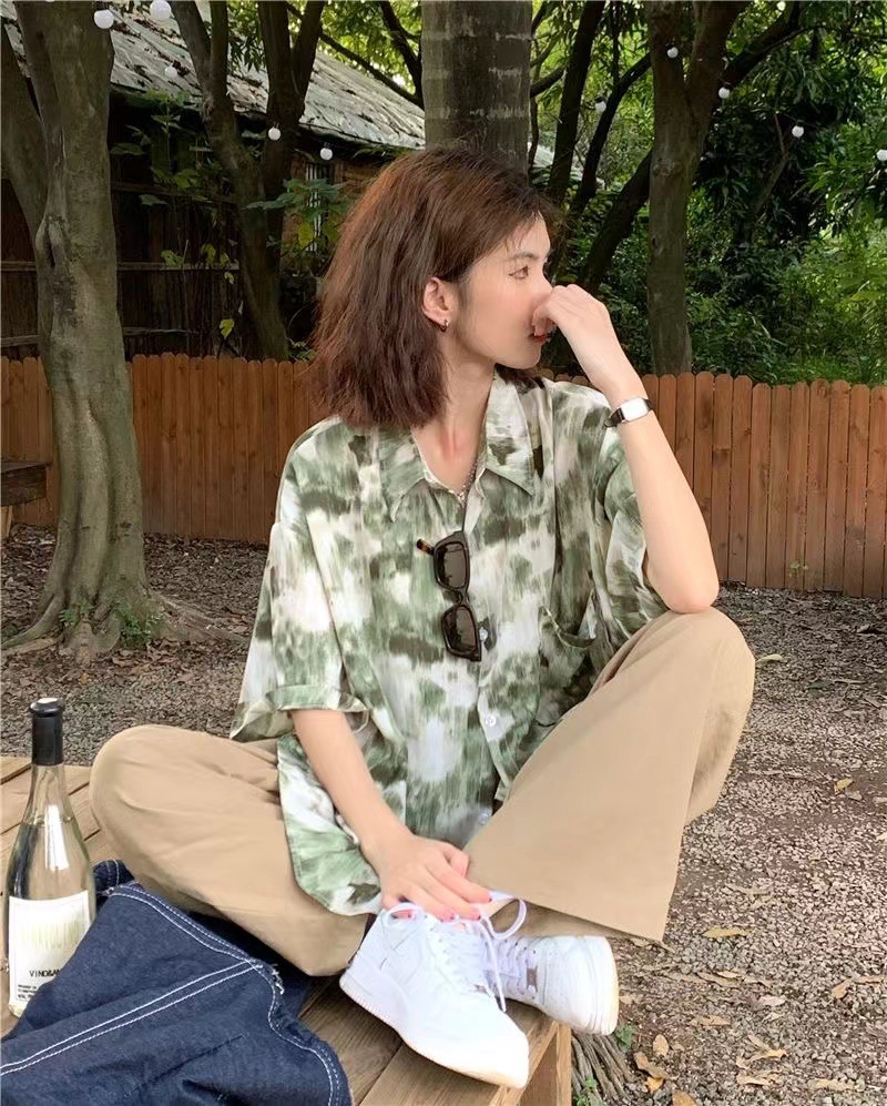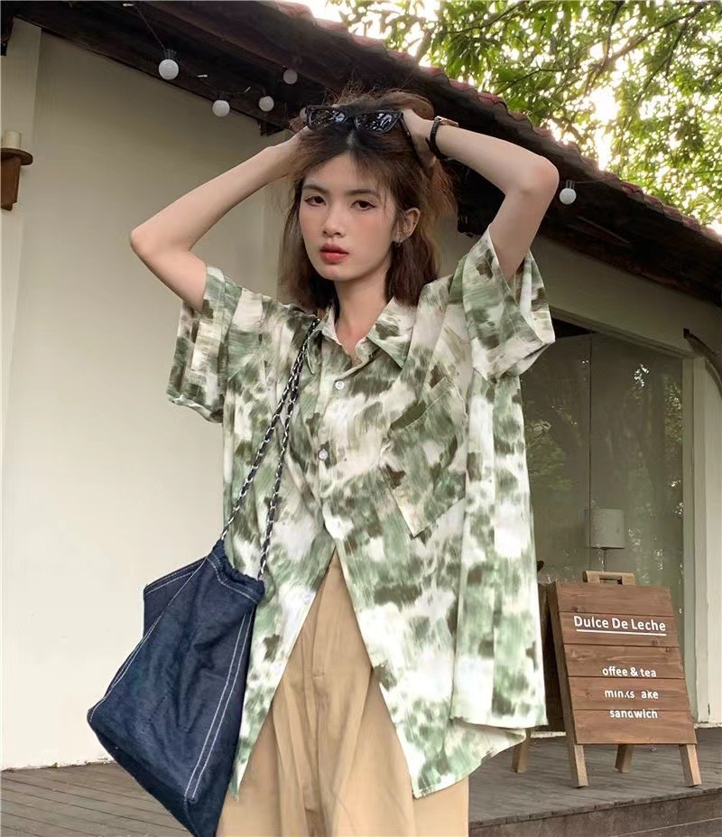 홍콩 스타일 복고풍 느슨한 슬리밍 짧은 소매 잉크 그림 꽃 셔츠 여성을위한 새로운 얇은 선 스크린 셔츠 카디건 탑 여름스토어 가기