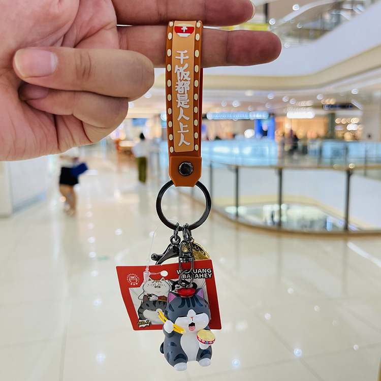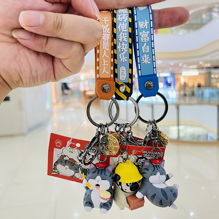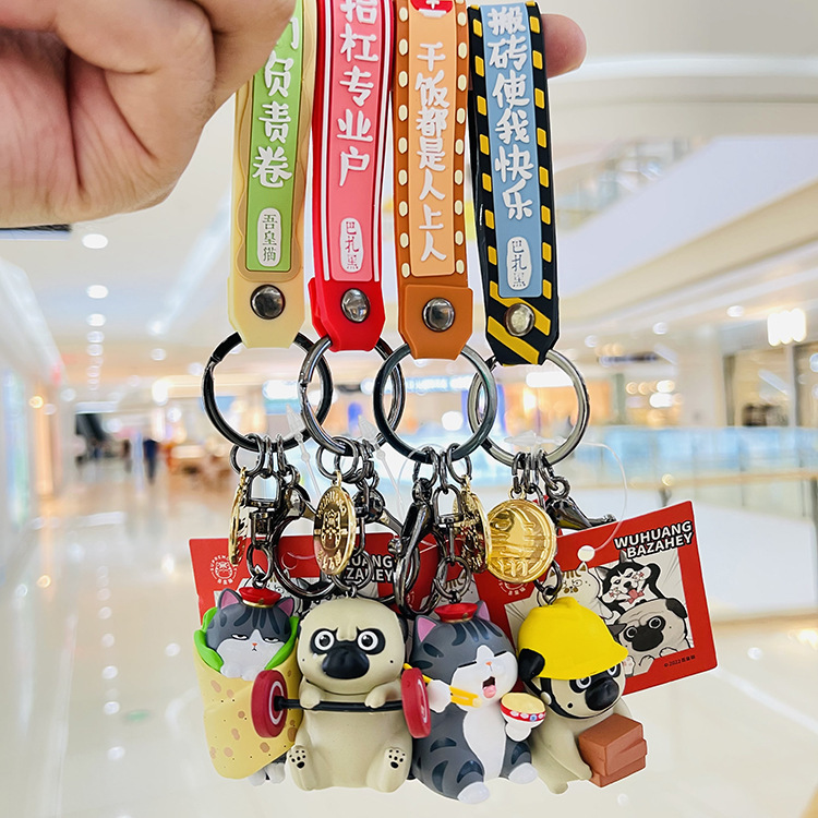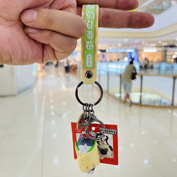정품 Wu Huang Wanwan 잠자는 Barza 검은 키 체인 고양이 개 인형 펜던트 남녀 선물 커플 장식품스토어 가기