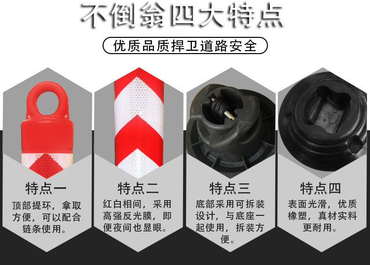 金杰不倒翁警示柱弹力柱 橡胶底红白防撞柱分体式可拆塑料桩耐用