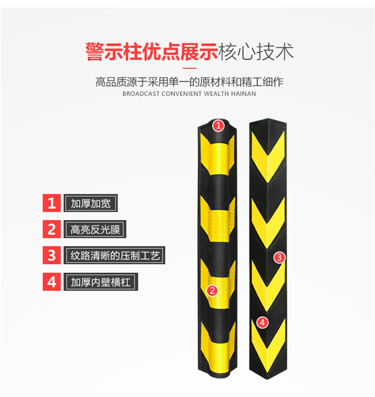 80CM反光橡胶护角条橡塑护墙角地下车库防撞条停车场交通轮廓标志