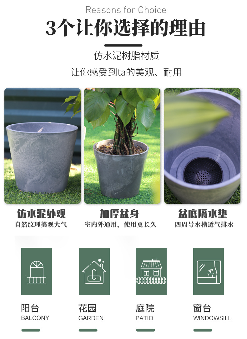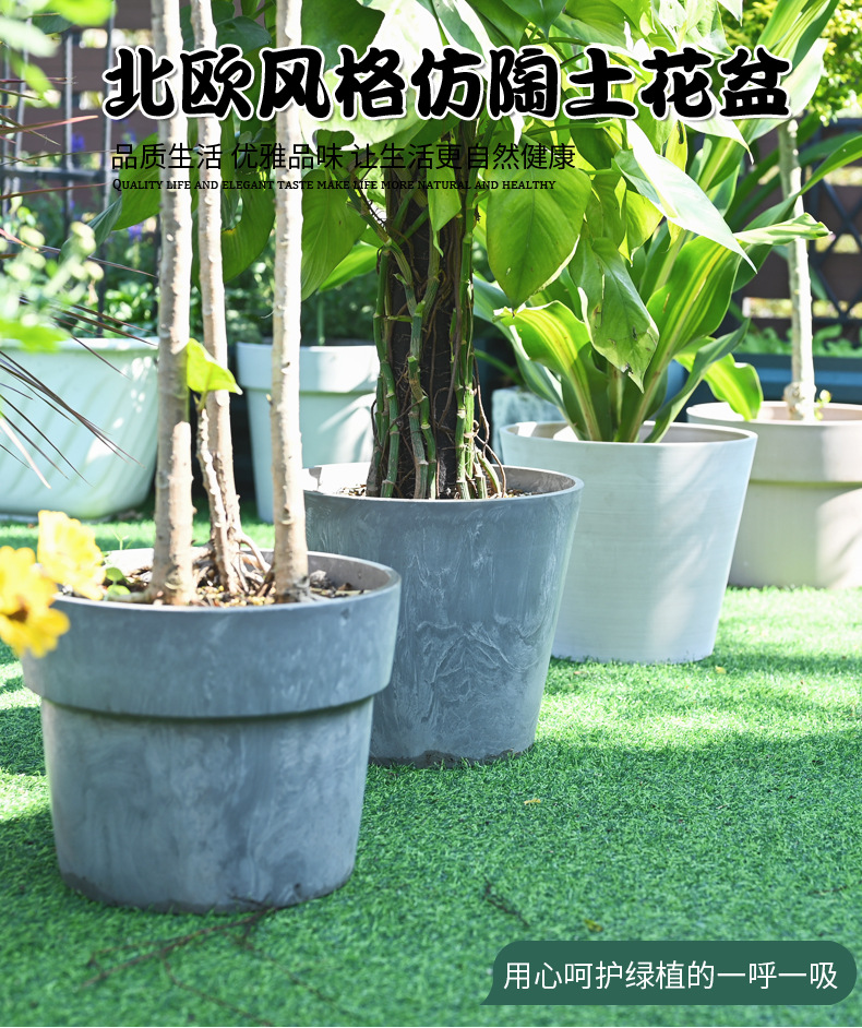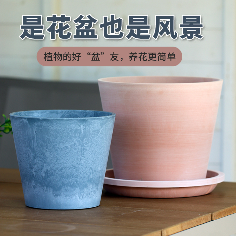 플라스틱 화분 모조 돌 둥근 분지 시멘트 맷돌 큰 직경 발코니 즙이 많은 간단한 사무실 가정 도자기 냄비스토어 가기